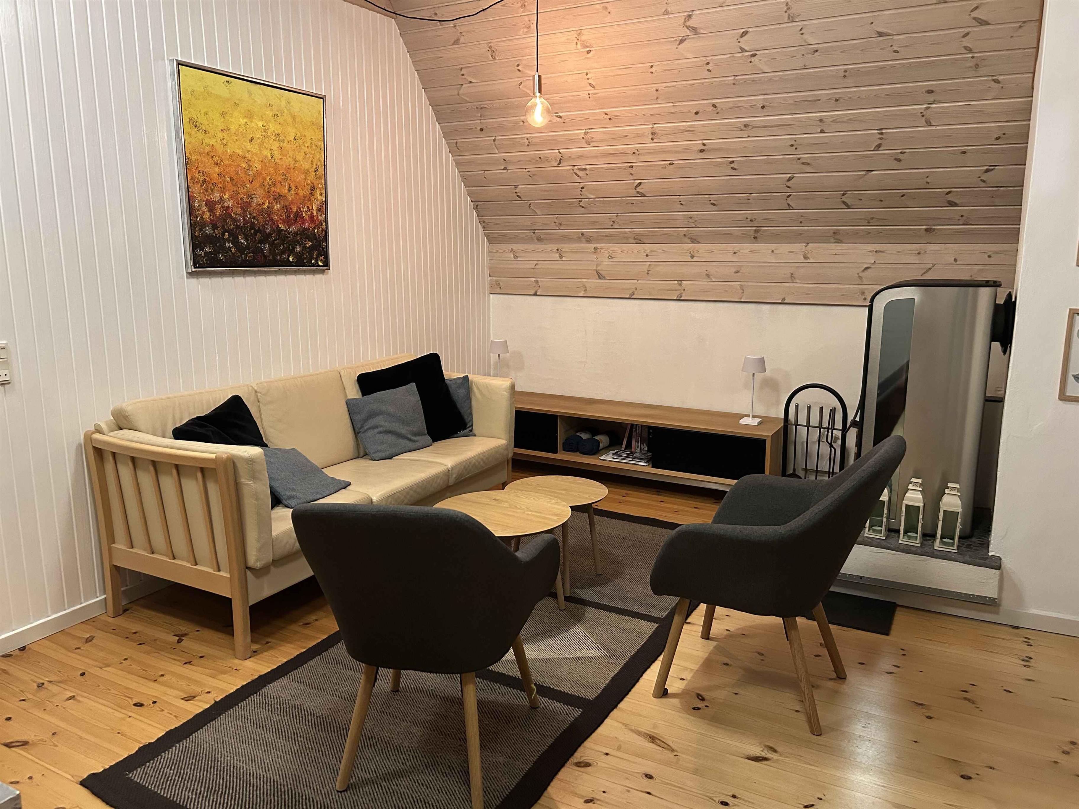 Charmerende sommerhus med stråtag muret i klassiske røde mursten, med dejligt lysindfald og en højloftet hems. Hvis stilhed, fred og ro samt dejlig natur noget for dig, så er dette sommerhus et oplagt valg. Fra det hyggelige sommerhus i 2. række til vandet er der kun nogle få hundrede meters gang til vandet, og den skønneste udsigt over Avnø fjord. Huset har en stor lys stue, med et stort vinduesparti og to store fløjdøre, mod haves grønne træer og buske. Brændeovnens knitren kan nydes fra sofaen mens man nyder udsigten. God spiseplads til alle ved det rustikke spisebord. Stue- og spise-rummet har loft til kip, som giver en åben og rummelig atmosfære. I det lille charmerende landkøkken er de fornødne redskaber og airfryer til at tilberede maden. Der er et soveværelse med dobbeltseng og et mindre værelse med en enkelt seng. På den høje hems er to senge, og hemsen er åben mod stuen, hvor der er loft til kip. For at komme op på hemsen benyttes en robust trappestige. På badeværelset finder man også en vaskemaskine, så en tøjvask let kan klares. Der er to træ-terrasser i forskellige orienteringer, så det er let at finde en stille og solrig plads, når solen skinner. Der er en overdækket terrasse så man også kan nyde kontakten med naturen selvom vejret ikke er helt i top. Området og husets have danner tit ramme for et mangfoldigt dyreliv. Bl.a. kan man se rådyr, harer, egern og en rig variation af fugle. Nattehimlen er kendt for at være en af de klareste og bedste i Danmark, til at betragte himlen og stjernerne. Vandreture langs stranden, som ligger få minutters gang fra huset, er dejlige året rundt på alle tider af dagen. Det er dejligt at ro havkajak, kano eller SUP i det normalt meget rolige og lave vand på fjorden. Det lave vand med sandbund er også rigtig godt for børn. Avnø naturcenter ligger blot 3 km væk, og er et beskyttet naturområde. Der er et rigt illustreret besøgscenter, og det er muligt at tage de udvendige trapper op til det gamle kontroltårn, hvor der er kikkerter så man kan se sælerne på fjorden. Knudshoved Odde, som en den lange landtange, der beskytter fjordens rolige vand, byder også på virkelig gode vandremuligheder og et rigt dyreliv. Bl.a. har forskellige naturprojekter udsat forskellige sjældne dyrearter. Vordingborg centrum ligger ca 7 km væk, hvor Gåsetårnet kan besøges og vække historien om Jyske lov, og Valdemar-kongerne. Der er også en lille og varieret botanisk have med gratis adgang. Den hyggelige gågade er en indbydende handelsgade, hvor man også finder adskillige restauranter og cafeer. En anbefalelsesværdig hvid sandstrand, med kystlivreddere, i nærheden kan besøges i Karrebæksminde, hvor der også er to minigolf-baner, og et hyggeligt strandliv. Nærmeste 18 hullers golfbane er i Sydsjællands Golfklub i Mogenstrup og Næstved Golfklub kan bestemt også anbefales. Lidt længere væk kan man besøge bl.a. Skovtårnet, Dodekalitten, Møns klint, Knuthenborg safaripark, Gavnø slot og meget mere. El-ladestander til el-bil er tilgængelig på den anden side af vejen; Tranevænget 9.