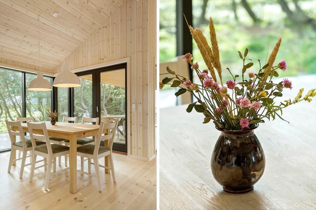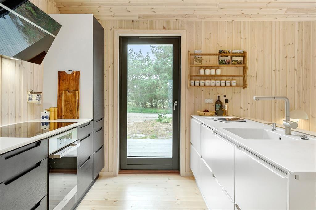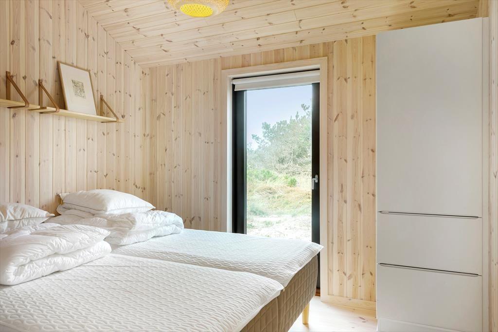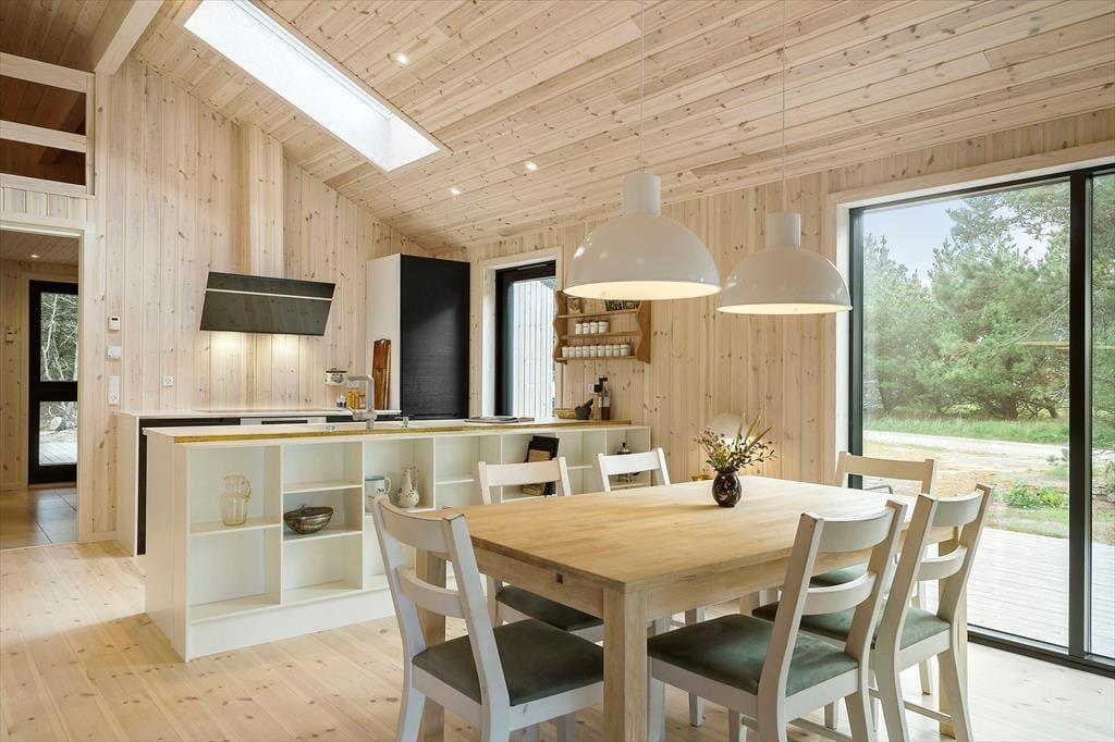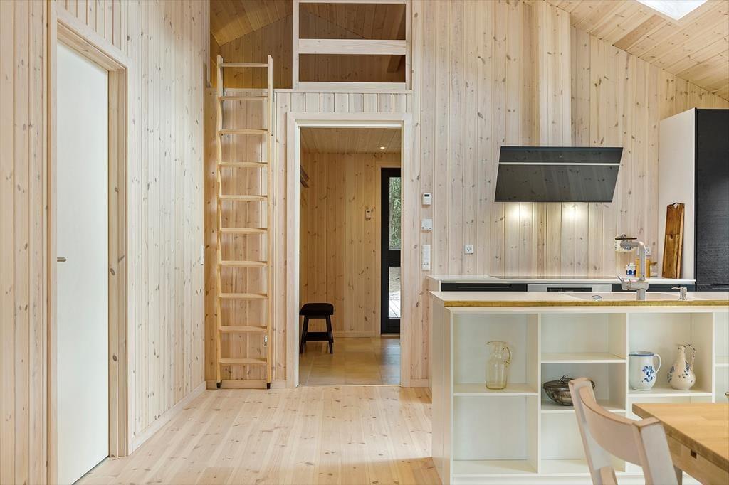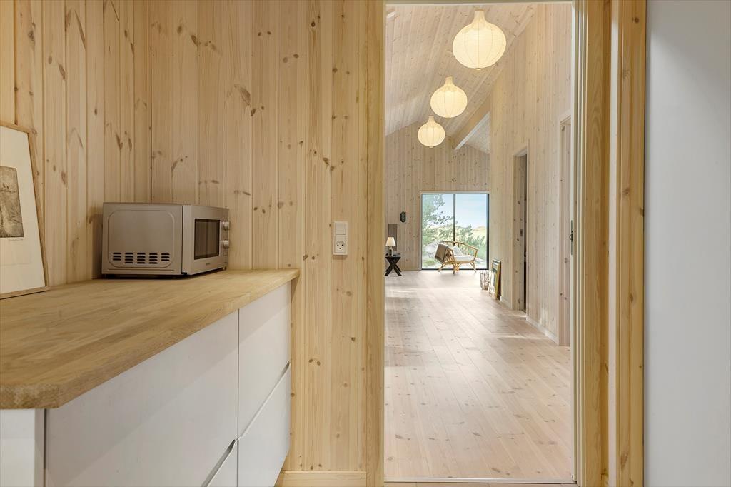 Når du træder ind i dette nybyggede træhus, bliver du mødt af en lys og moderne indretning, der byder på et varmt og indbydende miljø året rundt. Den energibesparende varmepumpe sikrer et behageligt indeklima, mens saunaen indbyder til ultimativ afslapning – perfekt efter en dag med friske gåture i klitterne. Husets rummelige planløsning gør det nemt at samles med familien, men også at finde ro i private kroge.