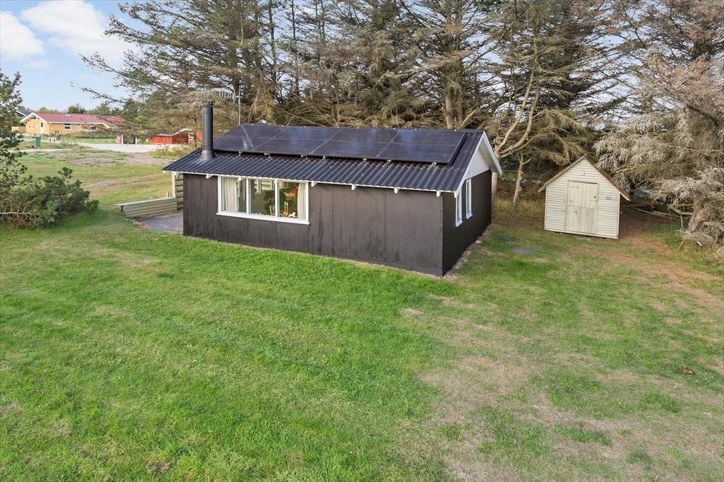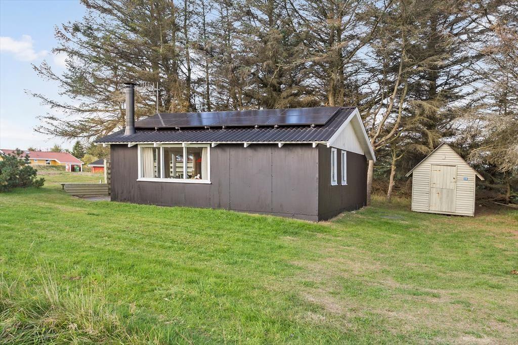 Sommerhuset ligger på en rummelig naturgrund, hvor du og din familie – eller måske jeres firbenede ven – kan udforske og nyde de mange muligheder, det åbne landskab giver. Den store terrasse indbyder til hyggelige grillmiddage under åben himmel eller en stille morgenkaffe med fuglesang i baggrunden. Her kan du læne dig tilbage og mærke roen brede sig, mens vinden fra Vesterhavet bringer en let duft af saltvand med sig.