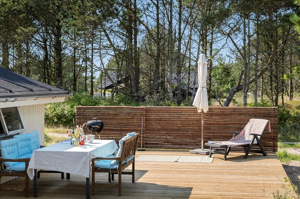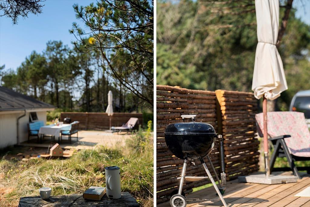 Udelivet er i centrum på Sandtornvej 43 – og det mærkes især på terrasserne, der er nyopførte og gennemtænkt placeret, så du altid kan finde en god plads i solen eller i læ for vinden. Her kan du starte dagen med morgenmad under åben himmel og slutte den af med grillmad og aftenhygge, mens solen går ned bag klitterne. Grunden er omgivet af lyng og lave træer, som skaber en rolig og ugeneret stemning, hvor du kan høre vinden suse og mærke stilheden helt ind i sjælen. Det er et oplagt sted at lade tankerne flyve, lægge hverdagen bag dig og bare være til stede – måske med en kop te og et tæppe over skuldrene på kølige sommeraftener.