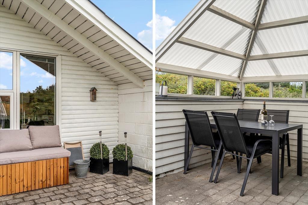 Udenfor byder sommerhuset på en dejlig, afskærmet terrasse, hvor du kan nyde livet i det fri – uanset vejret. Terrassen er delvist overdækket, så du både kan finde skygge på varme sommerdage og sidde i ly, når duggen falder eller vinden rusker let fra vest. Det lille, grønne naturområde rundt om huset er velholdt og indbydende, og her er masser af muligheder for at nyde din morgenkaffe i fred og ro, mens fuglene kvidrer i baggrunden. Om aftenen er det oplagt at tænde op i grillen og lade middagen trække ud i de lyse sommernætter. Grårisvej er en fredelig, lille stikvej, og du kan derfor se frem til uforstyrrede stunder i fuldkommen ro – kun afbrudt af naturens egne lyde.