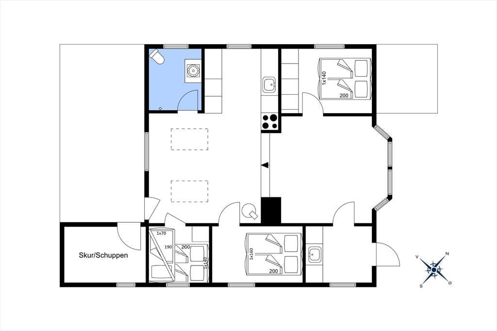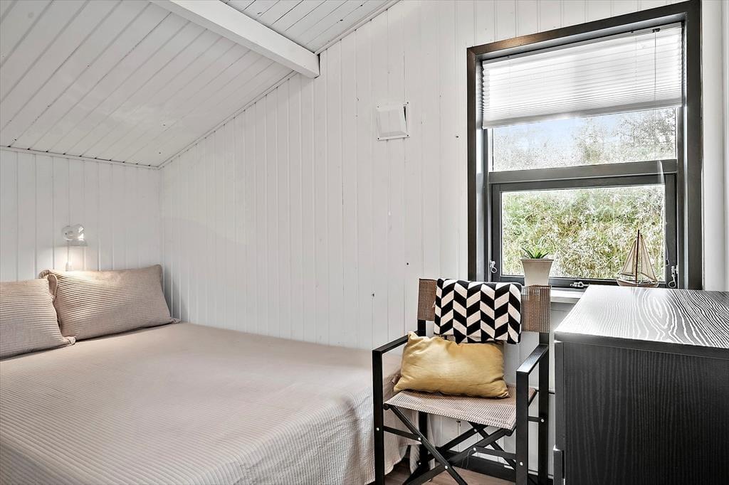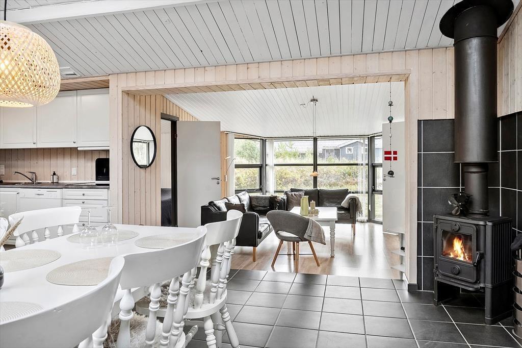 Indenfor bliver du mødt af en rummelig og lys atmosfære, hvor de store vinduespartier og ovenlysvinduer giver et uovertruffen lysindfald. Den åbne rumfordeling skaber en følelse af frihed og plads, og du vil hurtigt føle dig hjemme her. Sommerhuset er både energivenligt og hyggeligt, takket være en luft-til-luft varmepumpe og den knitrende brændeovn, der skaber varme og hygge på de kolde aftener. Den niveauforskudte indretning giver en fin opdeling mellem spisestuen og opholdsstuen, hvilket gør det muligt at samles til et måltid eller finde et stille hjørne til afslapning. Med flere gode soveværelser og en praktisk entré er huset ideelt for både små og store familier.