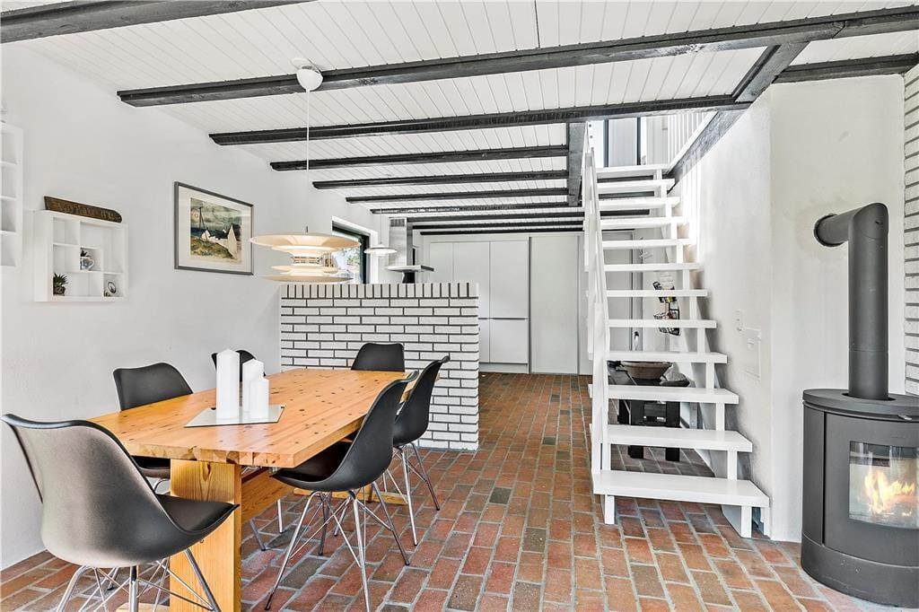Træd ind i dette smukke sommerhus, hvor en varm og indbydende atmosfære møder dig fra første øjeblik. Den flotte indretning kombinerer moderne design med en hyggelig, klassisk sommerhusstemning. Brændeovnen, som er centralt placeret i stuen, skaber både varme og samlingspunkt for afslappende stunder. Forestil dig at sidde her en kølig aften, mens ilden knitrer, og roen sænker sig over familien. Huset er ideelt til op til 6 personer og tilbyder masser af plads til både fællesskab og privatliv. Her er der tænkt på detaljerne, så du kan føle dig hjemme og nyde din ferie i fulde drag.