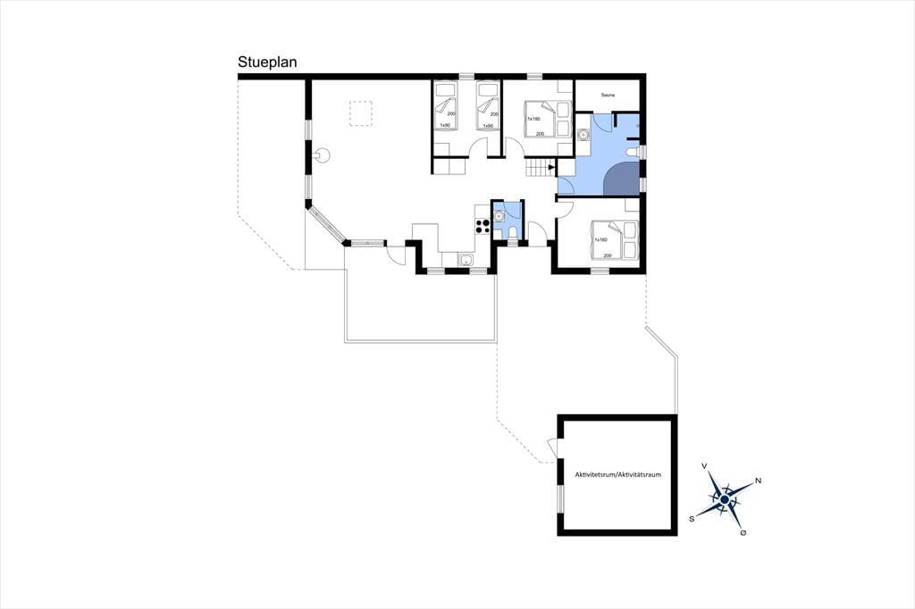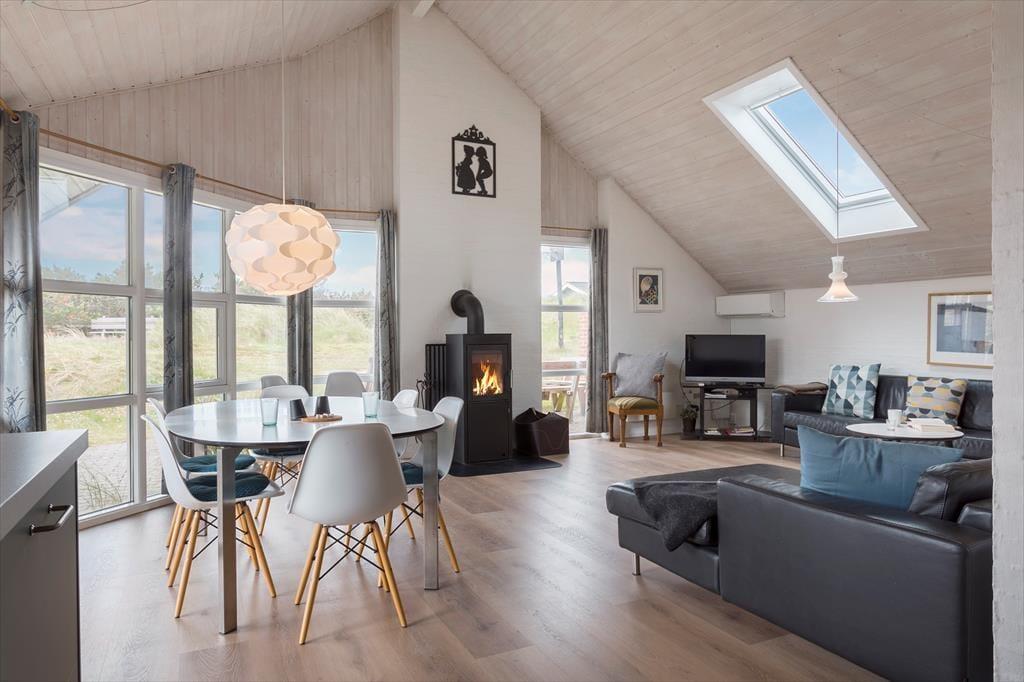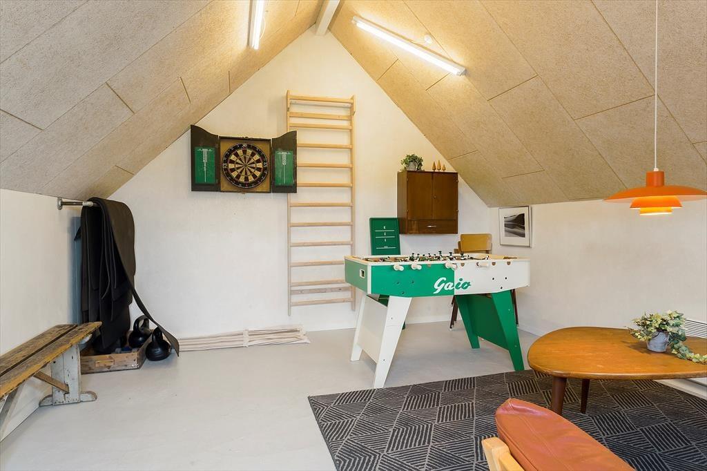 Fra det øjeblik du træder ind i dette rummelige sommerhus, mærker du den varme atmosfære, der indbyder til hygge og afslapning. Brændeovnen knitrer i stuen og skaber en stemning af nærvær, mens det moderne køkken-alrum er perfekt til fælles madlavning og lange samtaler over middagen. Sommerhuset byder også på afslapning og forkælelse med både spa og sauna – det ideelle sted at finde ro efter en dag fuld af oplevelser. For de aktive gæster tilbyder aktivitetsrummet sjove stunder med bordfodbold og andre spil, der gør huset til en favorit blandt både børn og voksne.