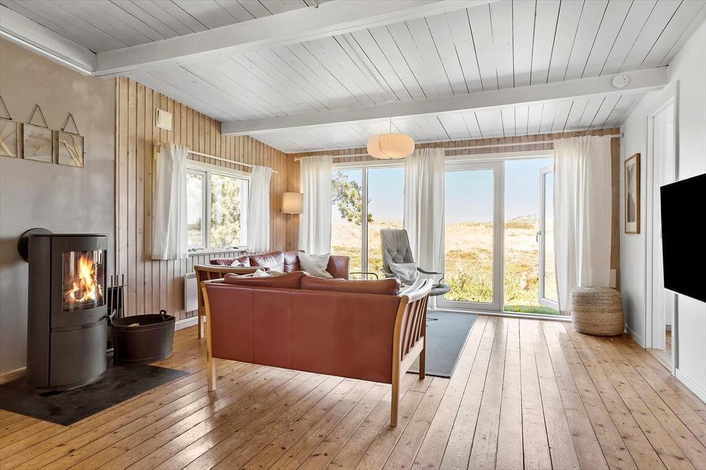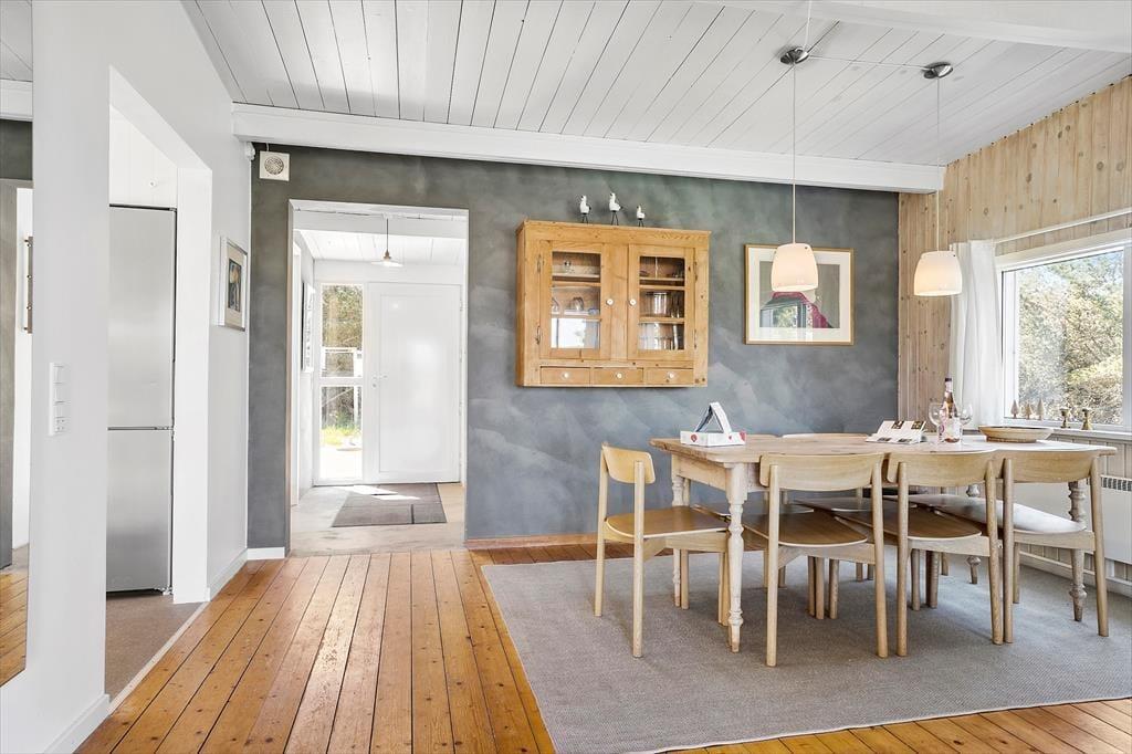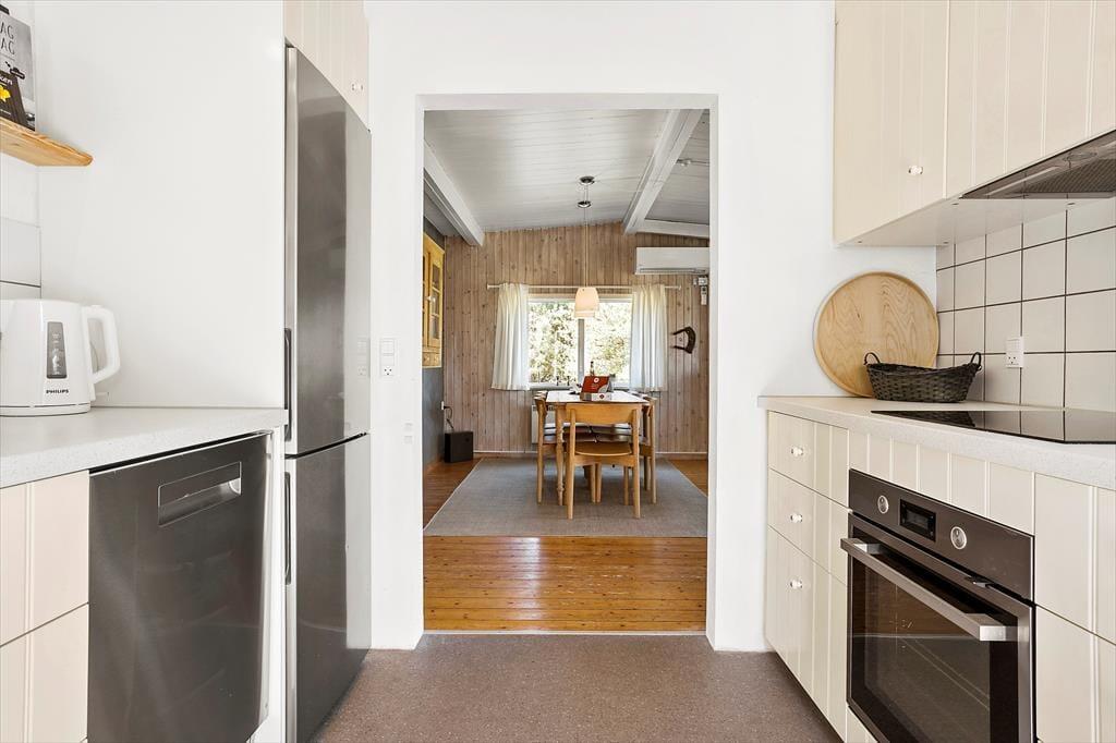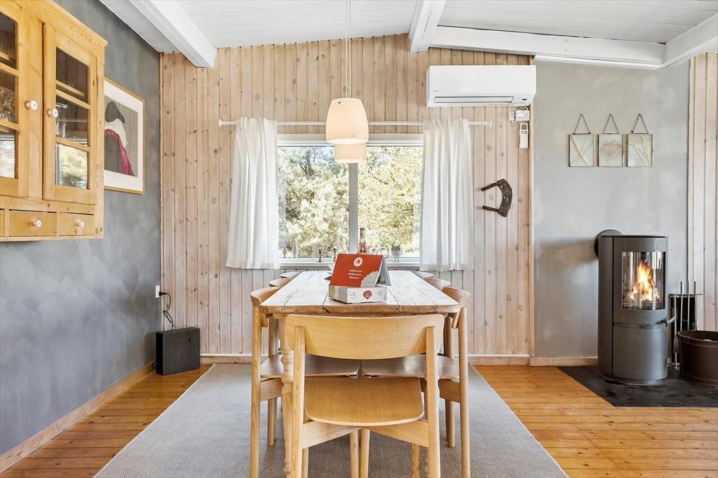 Træd ind i dette charmerende sommerhus, hvor varme og hygge møder dig fra første øjeblik. Brændeovnen står klar til at sprede knitrende varme på kølige aftener, mens varmepumpen sikrer en behagelig temperatur året rundt. Husets indretning er enkel og indbydende, designet til at skabe en afslappet stemning for op til seks personer – og med mulighed for at tage familiens firbenede venner med på ferien. Saml familien om brændeovnen med en god bog eller et brætspil, og lad ferien fyldes med nærvær og ro.