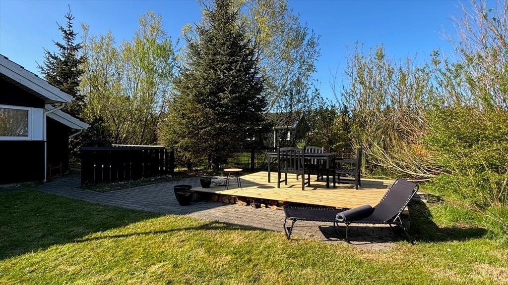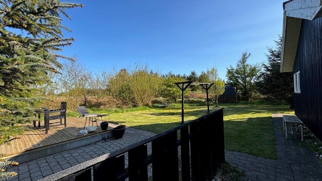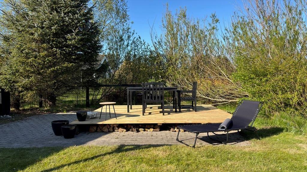 Den store, lukkede have gør det let at nyde ferien i det fri. Her kan børn og husdyr frit lege og boltre sig, mens du slapper af på terrassen med en kop kaffe eller nyder aftensolen med grillmad og et glas vin. Med plads til både ro og aktiviteter bliver haven et naturligt samlingspunkt. Sommerhusets beliggenhed for enden af en rolig vej gør det nemt at finde fred og ro, mens de naturskønne omgivelser inviterer til gåture og oplevelser i Vorupørs vilde natur.