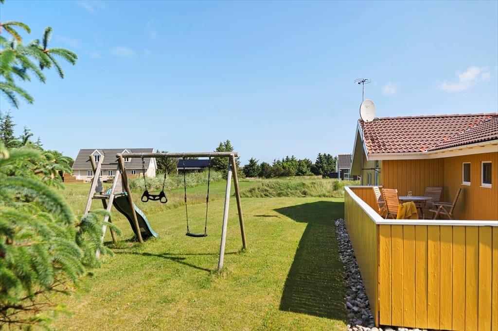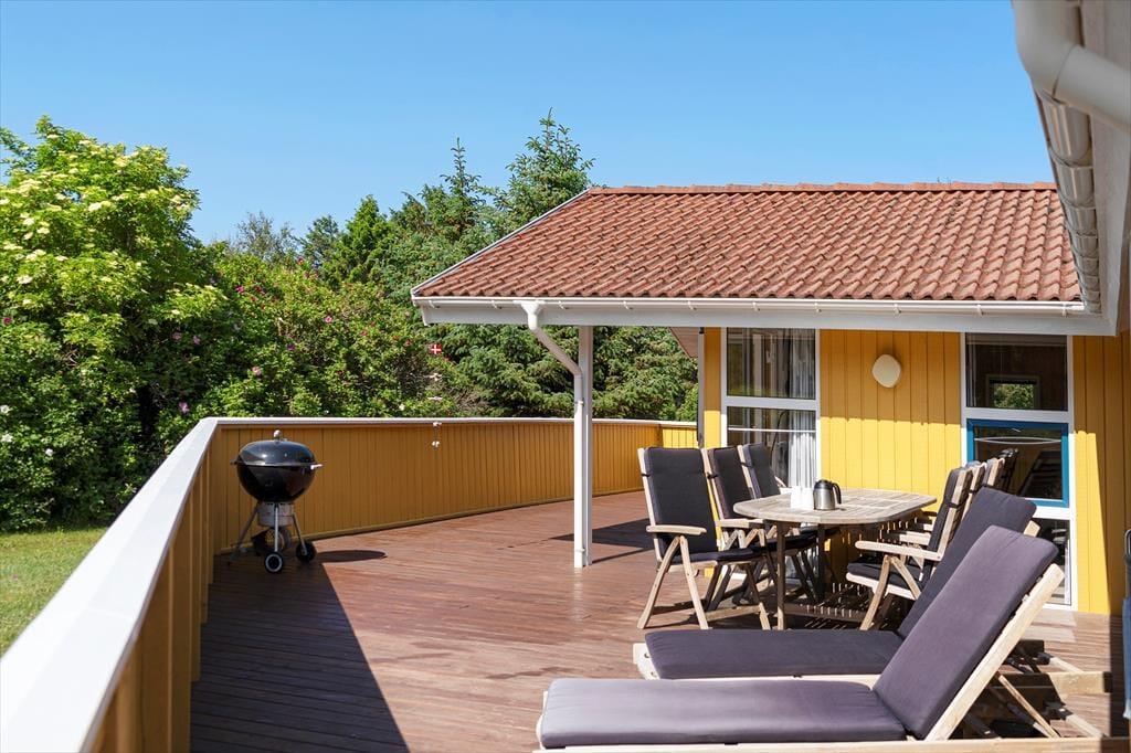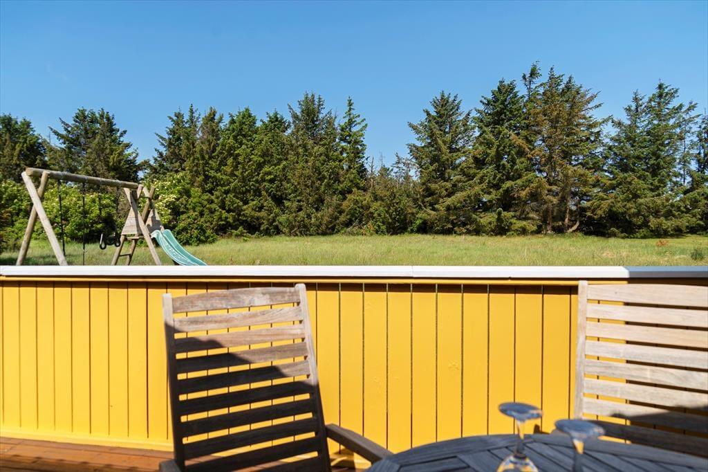 Udenfor venter en skøn grund, hvor ro og natur mødes. Her kan børnene lege frit på plænen, mens de voksne nyder en kop kaffe på terrassen. Terrassen indbyder til lange dage i solen, hvor grillen kan tændes op til en hyggelig aften under åben himmel. Den rolige beliggenhed gør, at I kan høre vinden suse i træerne og fuglene synge – en perfekt kontrast til hverdagens travlhed. Uanset om I ønsker afslapning med solbadning eller aktivitet med leg og spil i haven, finder I de ideelle rammer her.