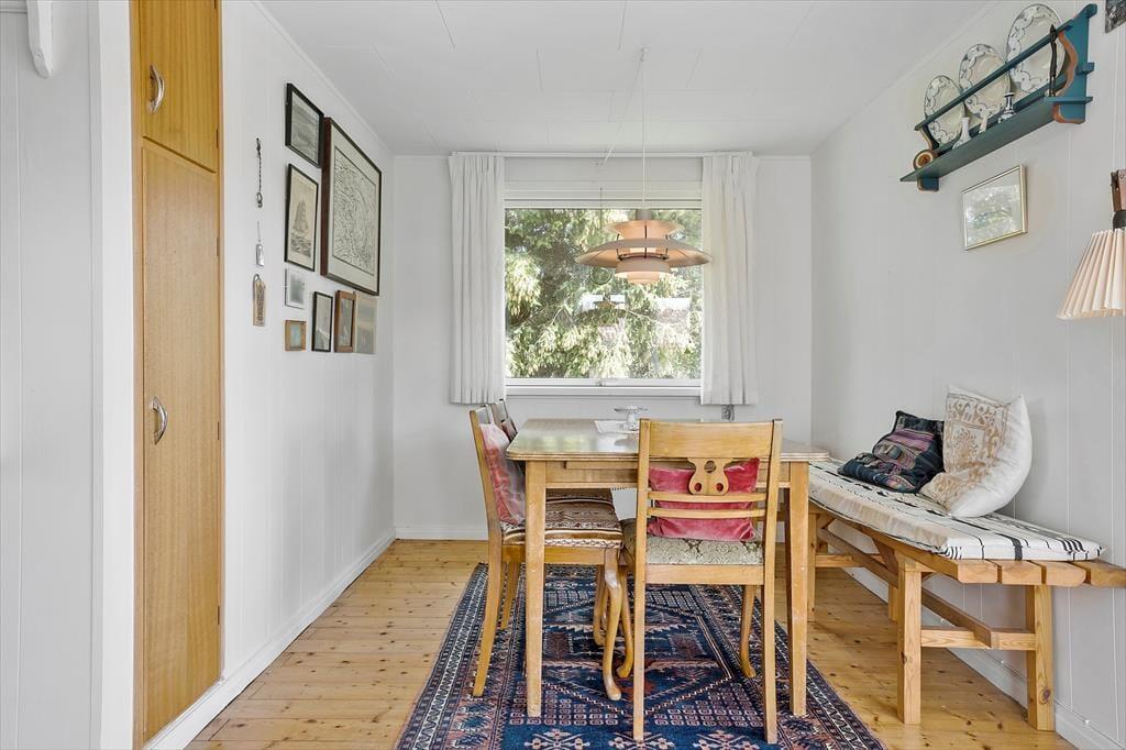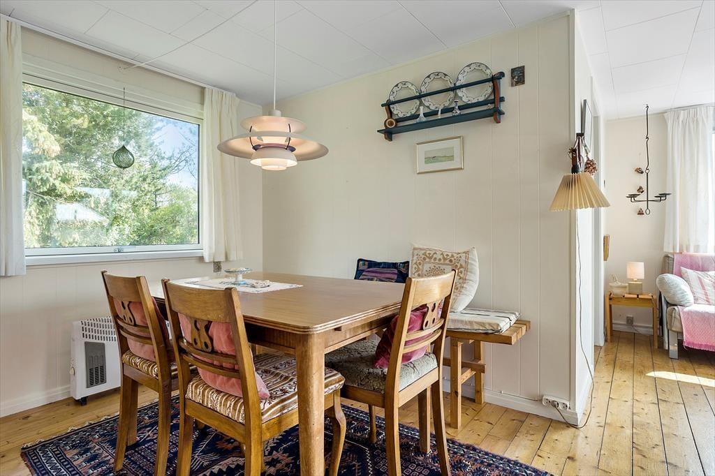 Når du åbner døren til dette enkle træsommerhus, mødes du af en autentisk retrostemning, der sender tankerne tilbage til 1970'erne. Den originale indretning skaber en helt særlig atmosfære, hvor man virkelig kan mærke historiens vingesus. Her er ingen moderne bekvemmeligheder som opvaskemaskine, fjernsyn eller internet. En ferieoplevelse her handler om nærvær og enkelhed, og de gode, gamle dage er aldrig mere end et øjeblik væk.