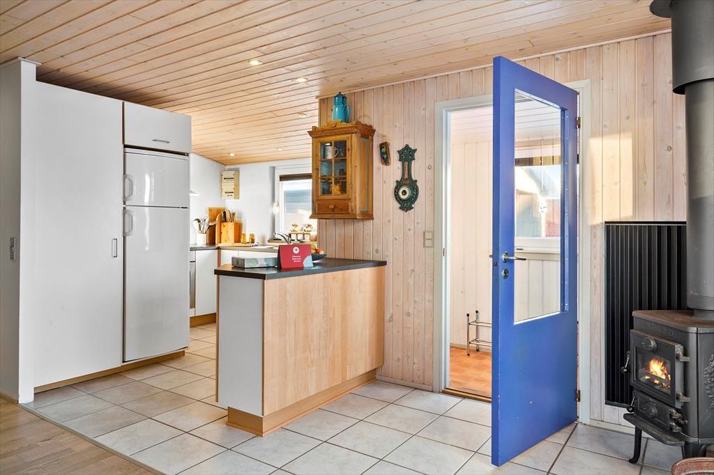 Når du træder ind i sommerhuset på Fiskervej 43, møder du en varm og indbydende atmosfære. Brændeovnens knitrende ild skaber en hyggelig stemning, perfekt til kølige aftener med familie eller venner. Huset er velindrettet og byder på plads til op til fem personer, hvilket gør det ideelt for en mindre familie eller en vennegruppe. De lyse trævægge og -lofter tilfører rummene en skøn, naturlig charme, der understøtter følelsen af ro og afslapning. Med både moderne faciliteter og klassisk sommerhusstemning er dette hjem det perfekte tilflugtssted året rundt.