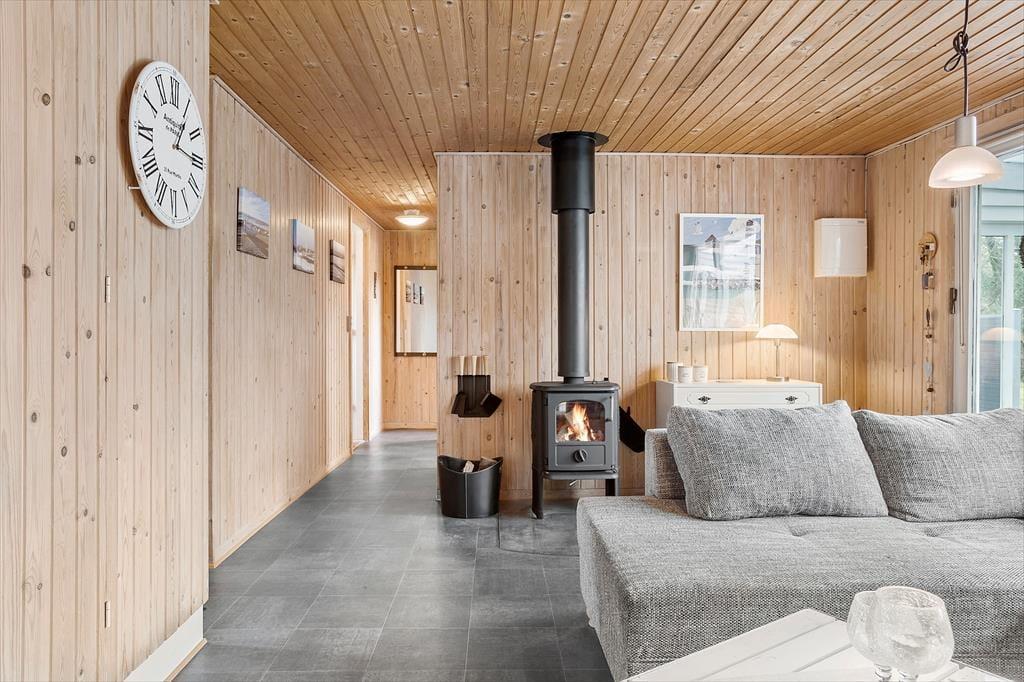 Træd ind i dette hyggelige feriehus, hvor atmosfæren straks emmer af ro og velvære. Stuen er indrettet med en charmerende brændeovn, der på kølige aftener spreder varme og samler familien til hyggelige stunder. Køkken og spiseområde ligger i åben forbindelse med stuen, hvilket gør det let at være sammen, selv når maden tilberedes. Efter en dag fyldt med oplevelser kan du forkæle dig selv med en afslappende tur i husets sauna, der giver fornyet energi og velbehag.