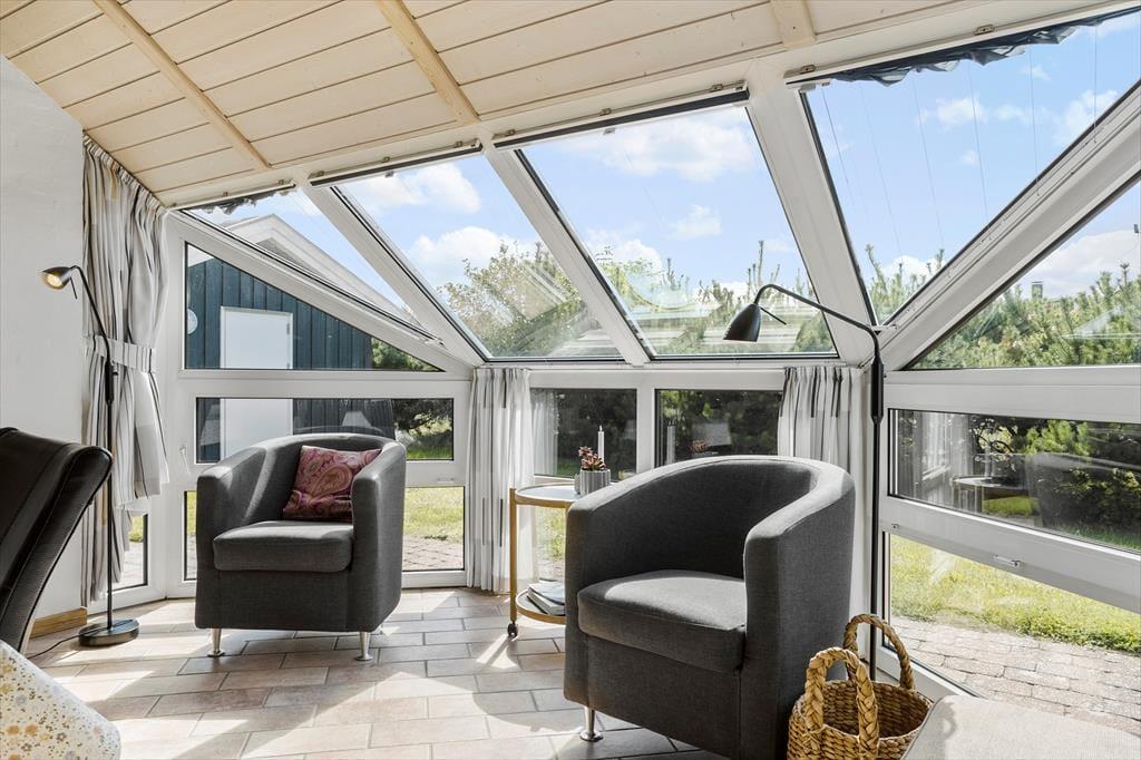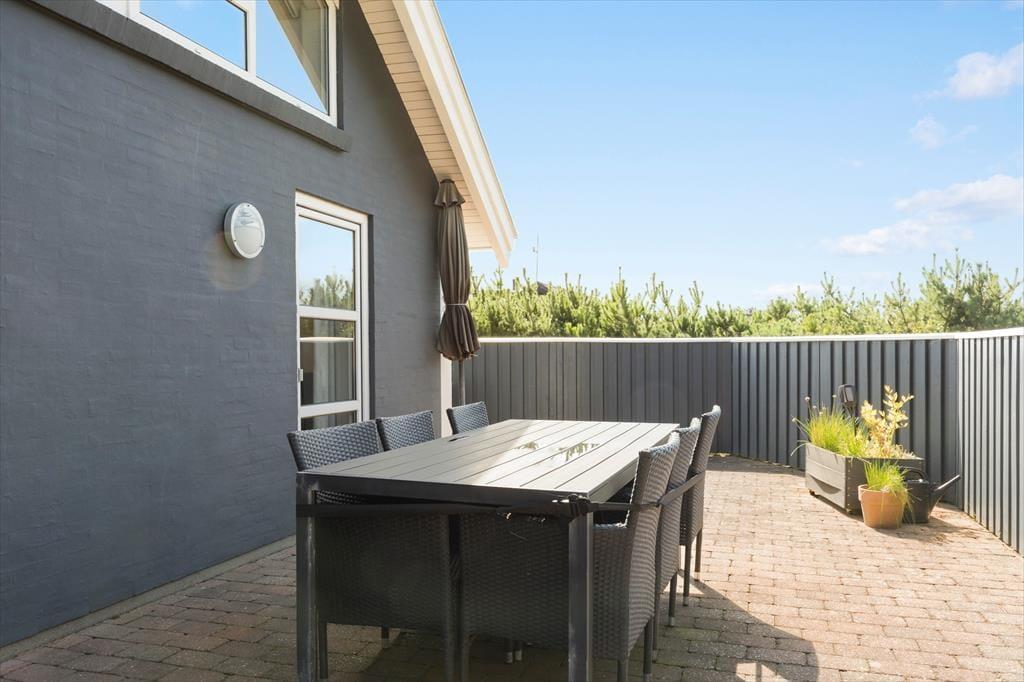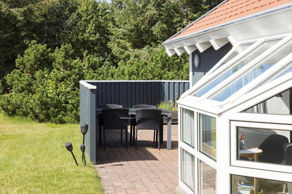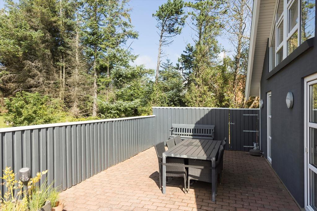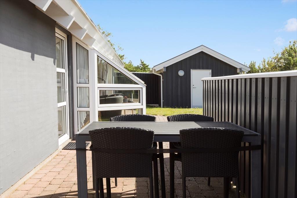 Sommerhuset byder på en skøn terrasse, der indbyder til udeliv fra morgen til aften. Start dagen med en kop kaffe i solen, slap af med en god bog i liggestolen, eller tænd op i grillen og nyd lange sommeraftener med lyden af havets brusen i baggrunden. Terrassen er delvist overdækket, så du kan nyde udelivet uanset vejret. Den omkringliggende natur skaber en rolig og afslappende atmosfære, hvor du kan koble helt af og nyde ferien i dit eget tempo.