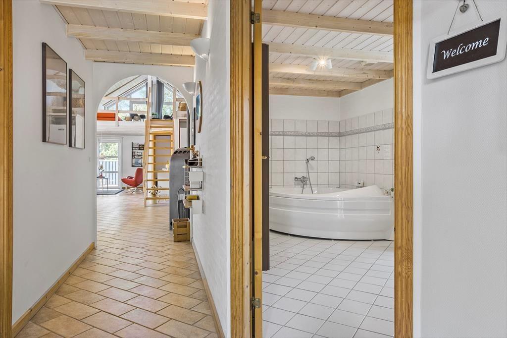 Træd ind i dette dejlige sommerhus, hvor hyggen er i centrum. Stuen er indrettet med en brændeovn, der skaber den perfekte stemning til hyggelige aftener, mens store vinduespartier giver et skønt lysindfald og forbinder inde- og udeliv. Køkkenet er åbent og funktionelt, så I let kan samles om madlavningen og dagens måltider. Når det er tid til afslapning, kan du forkæle dig selv i spabadet, hvor du kan lade hverdagens stress forsvinde i det varme, boblende vand. Med plads til op til seks personer er huset ideelt til både familier og venner, der vil nyde en ferie i rolige omgivelser.