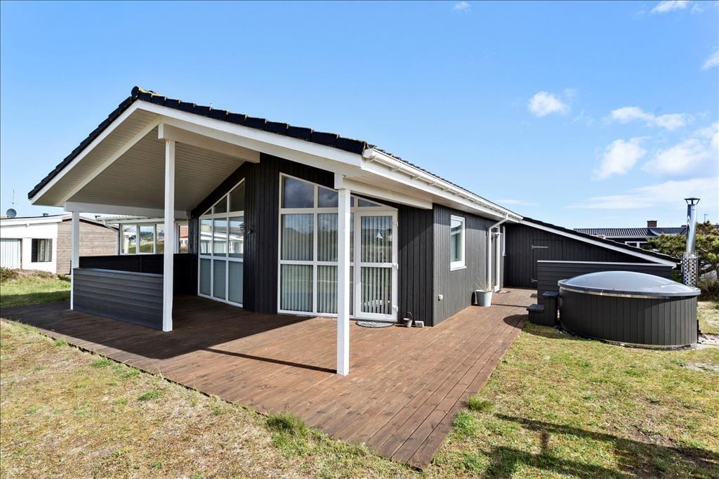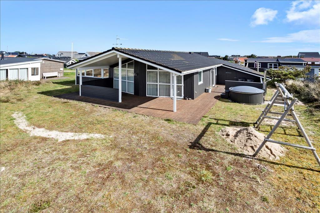 Udenfor venter en skøn naturgrund, der inviterer til leg og aktiviteter for både store og små. Her kan du tage et spil bold med børnene eller bare nyde stilheden på terrassen med en kop kaffe i hånden. For ekstra luksus kan du tage et afslappende bad i sommerhusets vildmarksbad, hvor du kan lade tankerne flyde, mens du nyder den friske luft og stjernehimlen over Vorupør. Uanset om du vil være aktiv eller bare nyde freden, er rammerne her perfekte til at koble af og lade op.