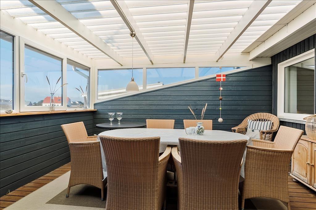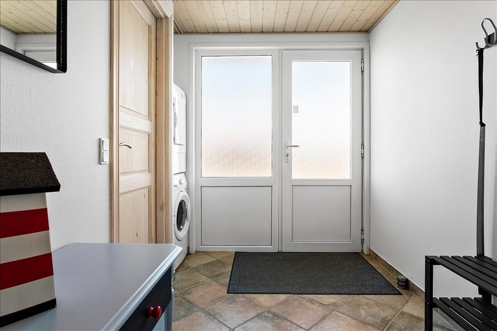 Når du træder indenfor i dette hyggelige sommerhus, bliver du straks mødt af en varm og indbydende atmosfære. Brændeovnen står klar til at sprede varme og hygge på de kølige aftener, mens husets indretning indbyder til afslapning og samvær. Her kan du finde roen efter en aktiv dag i naturen, om det er med en god bog, et brætspil eller bare i selskab med dem, du holder af. Sommerhusets funktionelle indretning og lysindfald fra de store vinduer sikrer, at du føler dig hjemme, uanset årstiden.