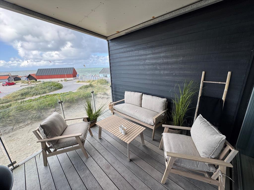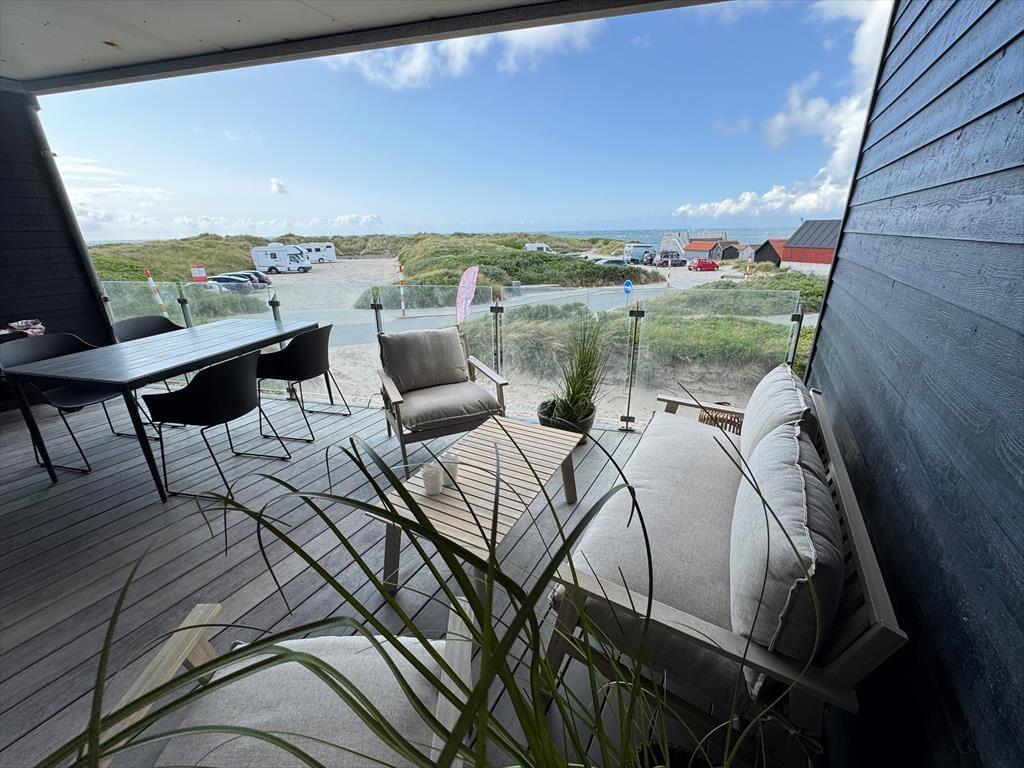 Udenfor venter en skøn terrasse, hvor du kan starte dagen med en kop kaffe, mens du nyder den fantastiske udsigt over havet og de vidtstrakte klitlandskaber. Med kun få skridt til stranden er det let at tage en spontan gåtur langs vandet eller mærke sandet mellem tæerne. Sommerhuset har også et dejligt udendørs spiseområde, perfekt til lange sommeraftener med grill og hyggelige samtaler. Området omkring huset indbyder til afslapning og ro, hvor du kan lade tankerne vandre og virkelig nyde ferien i naturskønne omgivelser.