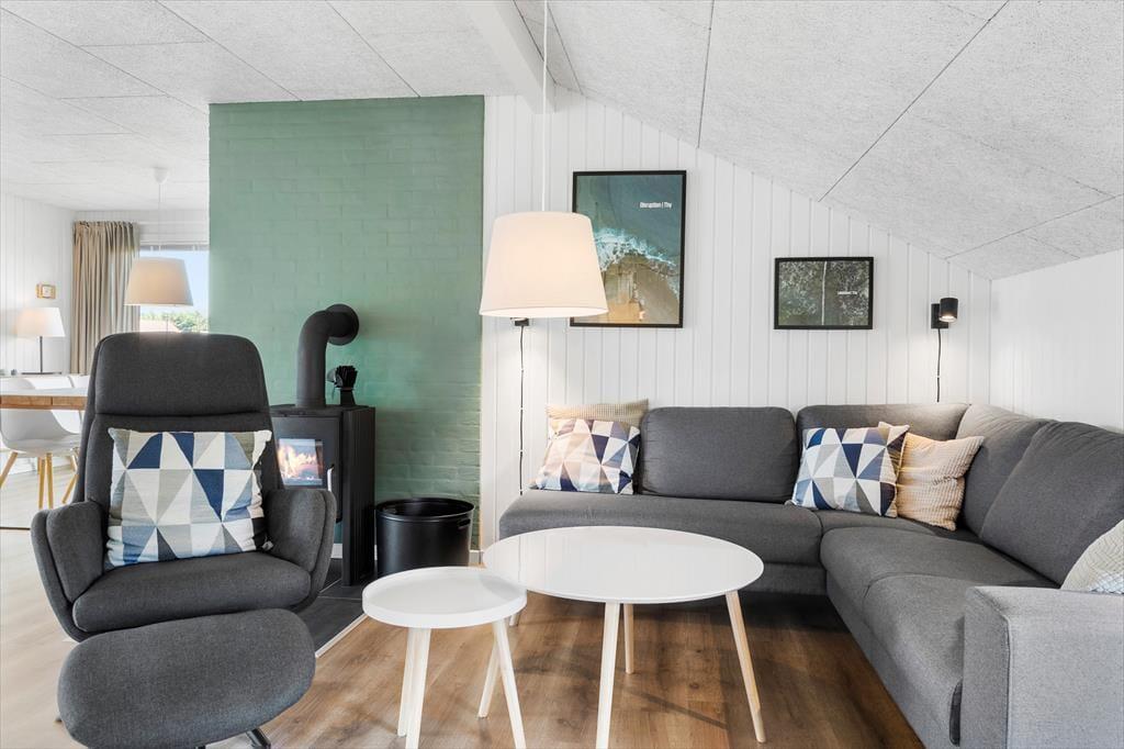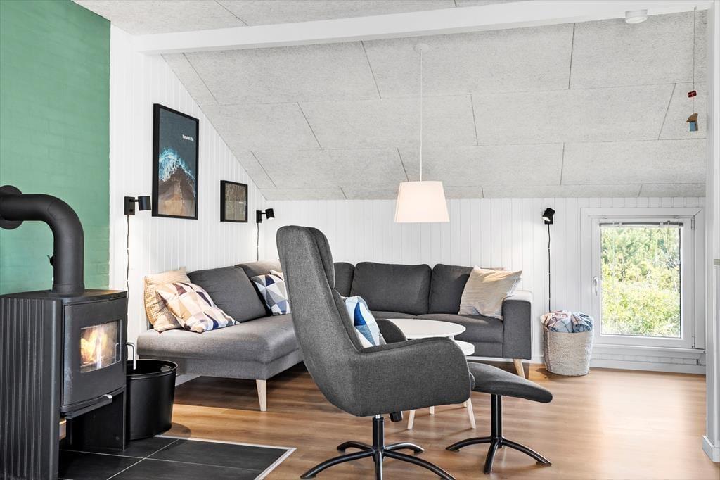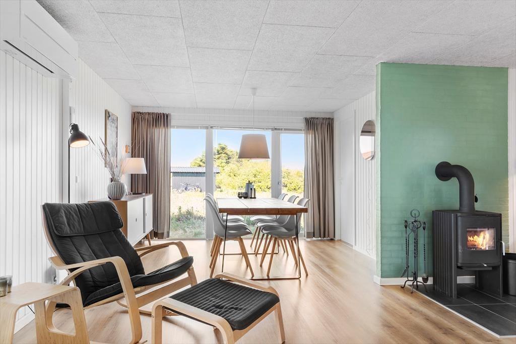 Sommerhuset emmer af varme og hygge, og allerede ved første skridt over dørtærsklen mærker du den hjemlige atmosfære. De lyse rum, den gennemtænkte indretning og den charmerende brændeovn i stuen skaber en afslappende ramme om ferien – perfekt til hyggelige aftener med familie og venner. Her kan du sætte dig til rette med en god bog og lade flammerne knitre i baggrunden eller nyde en brætspilsaften, mens varmen fra ovnen breder sig. Køkkenet er en integreret del af opholdsrummet, hvilket gør det nemt at være sammen – uanset om du står for madlavningen eller slapper af i sofaen.