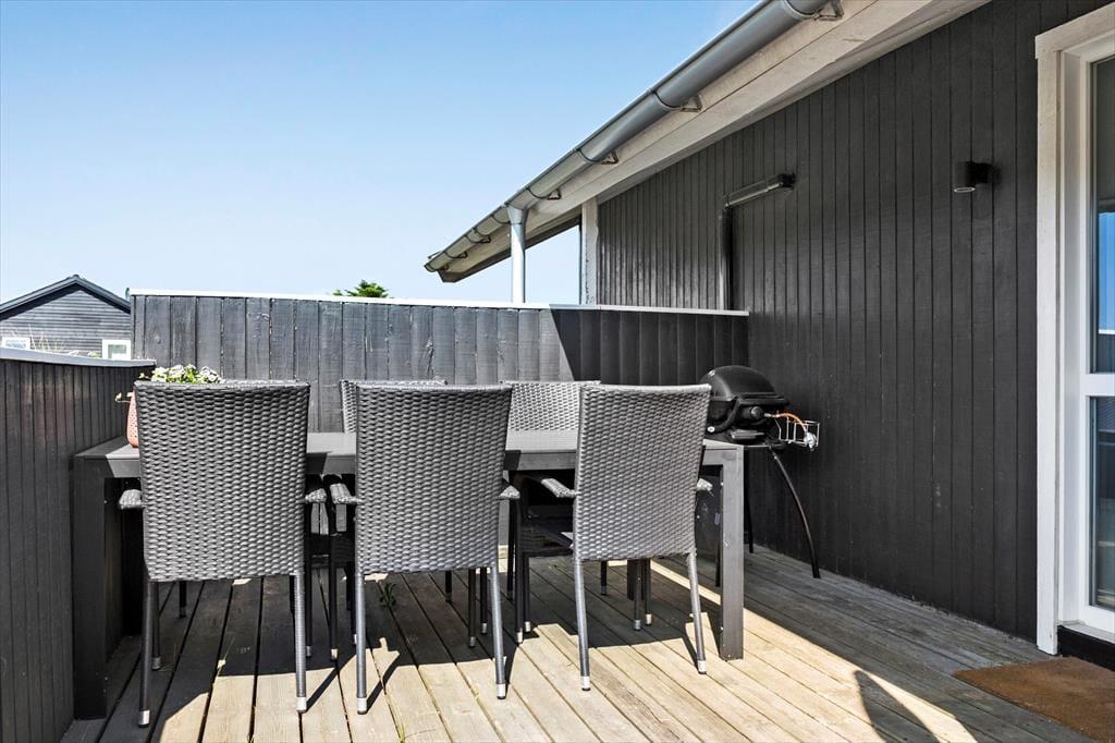 Udenfor venter en stor, naturskøn grund, der er skabt til ferieglæder for både store og små. Børnene kan løbe frit og lege, mens de voksne slapper af på terrassen med en kop kaffe i morgensolen. Den hyggelige terrasse indbyder til lange sommeraftener med grillhygge og gode samtaler, mens den friske havluft fylder dine lunger. Da sommerhuset ligger tilbagetrukket fra trafikken, kan I nyde freden og de naturskønne omgivelser i fuldstændig ro. Og har du din firbenede ven med på ferie, vil den elske at boltre sig på den rummelige grund.