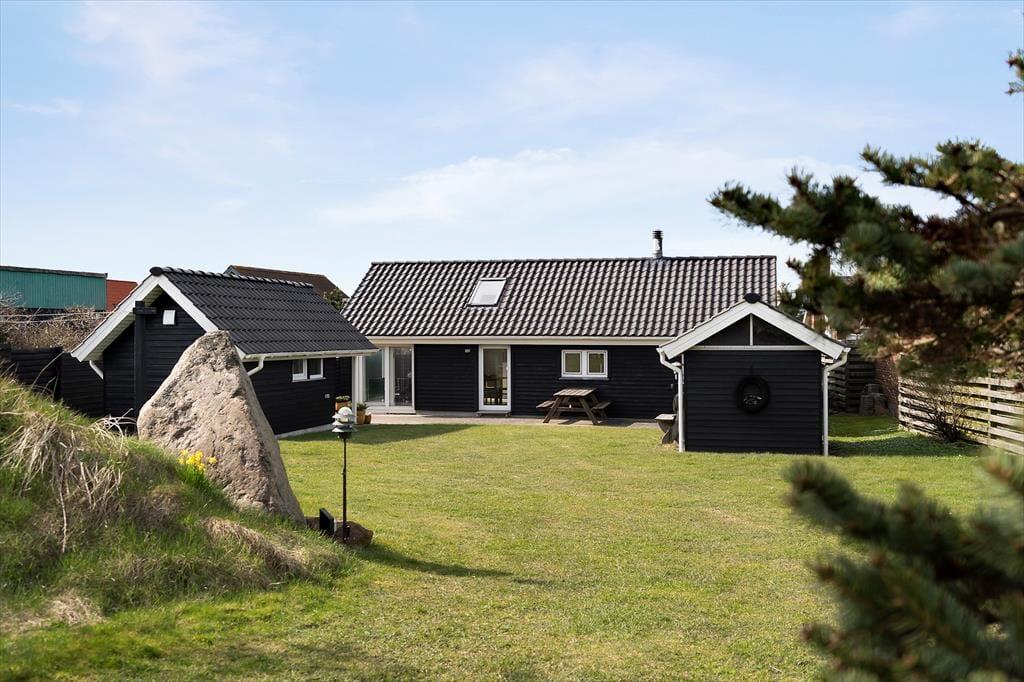 Når solen skinner over Vestkysten, er der rig mulighed for at nyde det udendørs liv i sommerhusets dejlige have. Her finder du en skøn terrasse, hvor du kan starte dagen med en kop kaffe i morgensolen eller nyde en hyggelig grillaften med familie og venner. Den rummelige grund giver masser af plads til udendørs leg og aktiviteter for både store og små, og du kan trække dig tilbage til en liggestol med lyden af bølgerne i baggrunden. Med en beliggenhed tæt på klitlandskabet og havet er det oplagt at tage en kort gåtur ned til stranden og mærke sandet under fødderne, mens solen går ned over Vesterhavet.