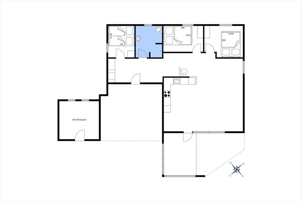 Huset rummer tre dejlige soveværelser, som alle er indrettet med komfort og ro for øje. Her kan du falde til ro efter en dag i den friske havluft og vågne op til lyden af fuglekvidder. Badeværelset er moderne og velholdt, og husets varme- og energiløsninger sikrer et behageligt indeklima året rundt.