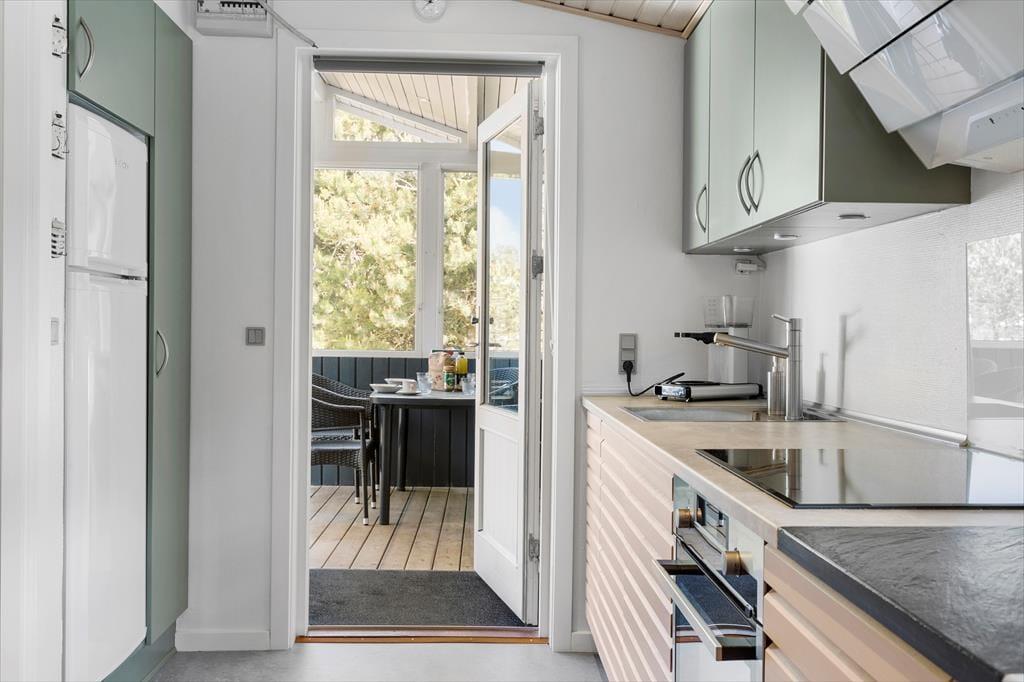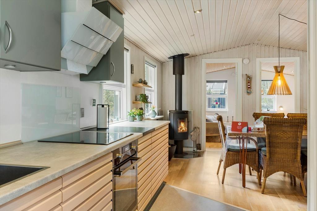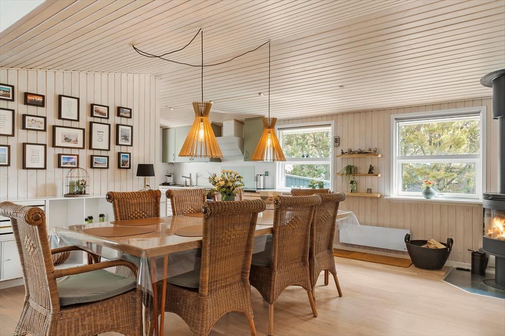 Træd ind i dette hyggelige og velindrettede sommerhus, hvor du straks vil føle dig hjemme. Indretningen emmer af klassisk sommerhuscharme, og den knitrende brændeovn i stuen sørger for en varm og indbydende stemning på kølige dage. Huset er lyst og venligt, og den åbne planløsning mellem stue, spiseområde og køkken skaber et naturligt samlingspunkt for hyggelige måltider og afslappende stunder. Uanset om du nyder en kop kaffe ved spisebordet eller læner dig tilbage i sofaen med en god bog, vil du opleve en følelse af ro og nærvær.