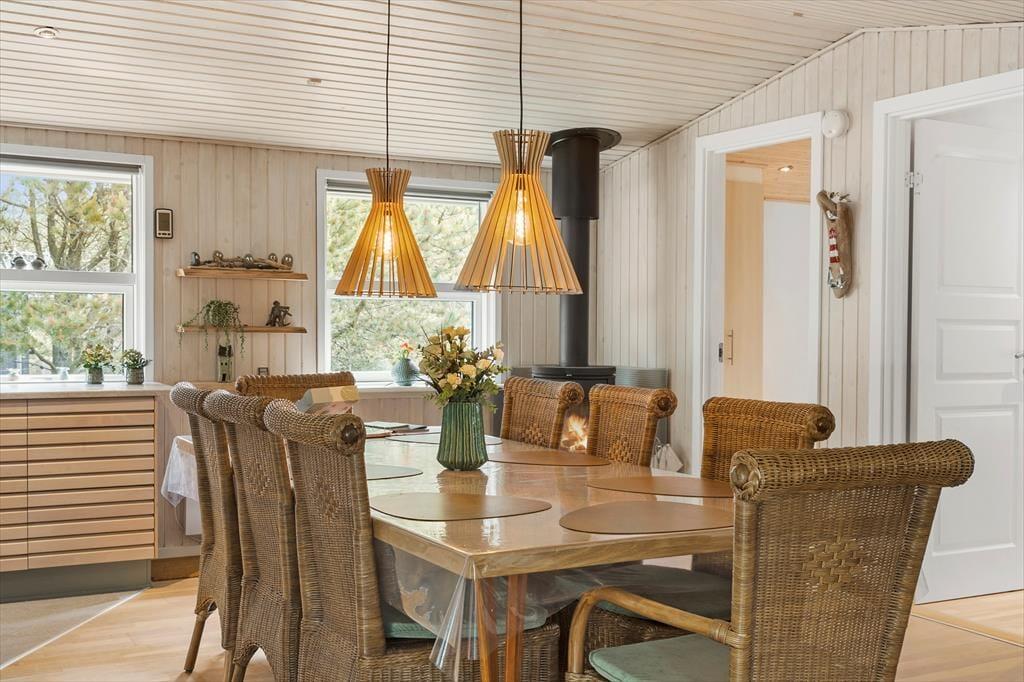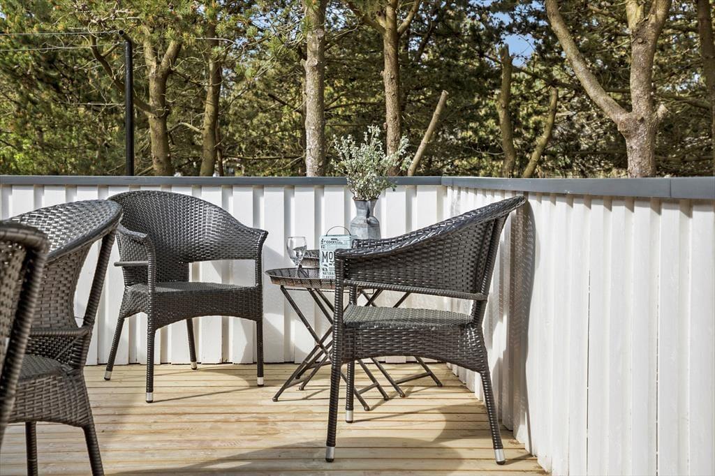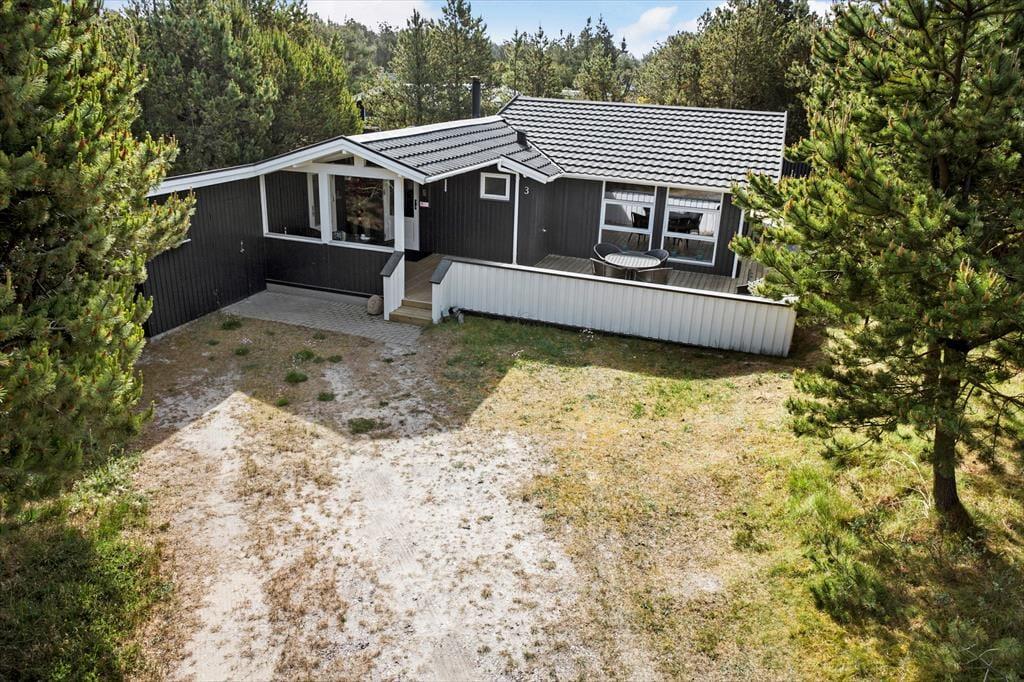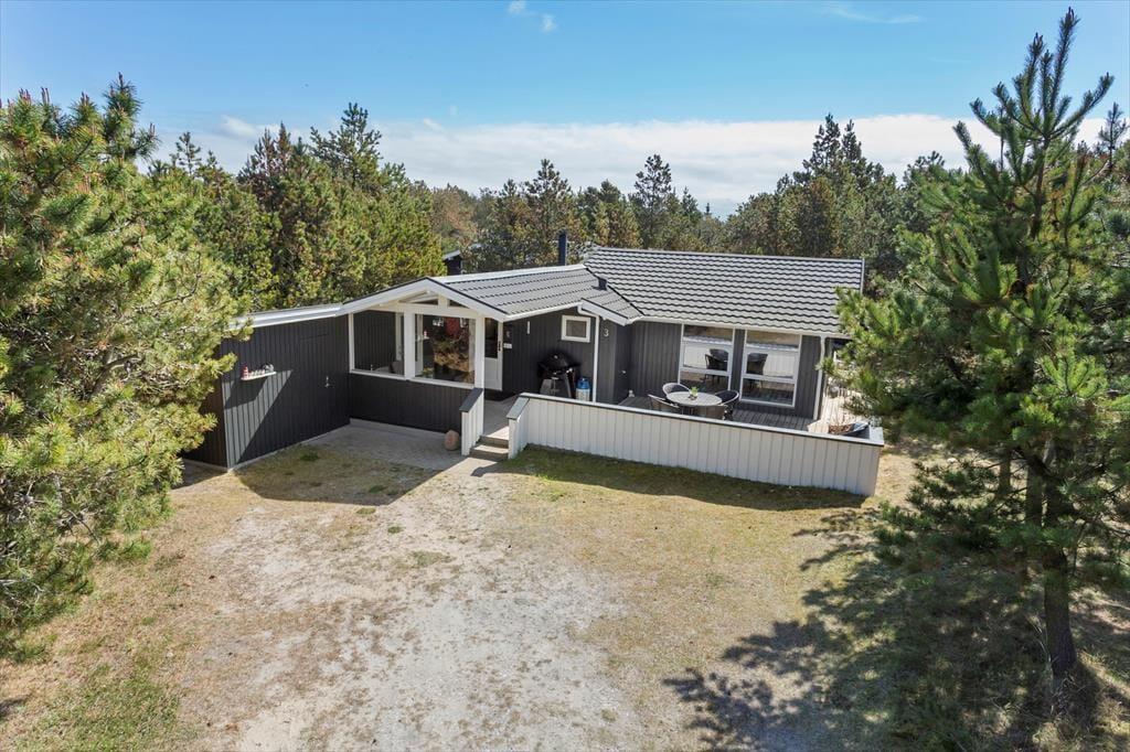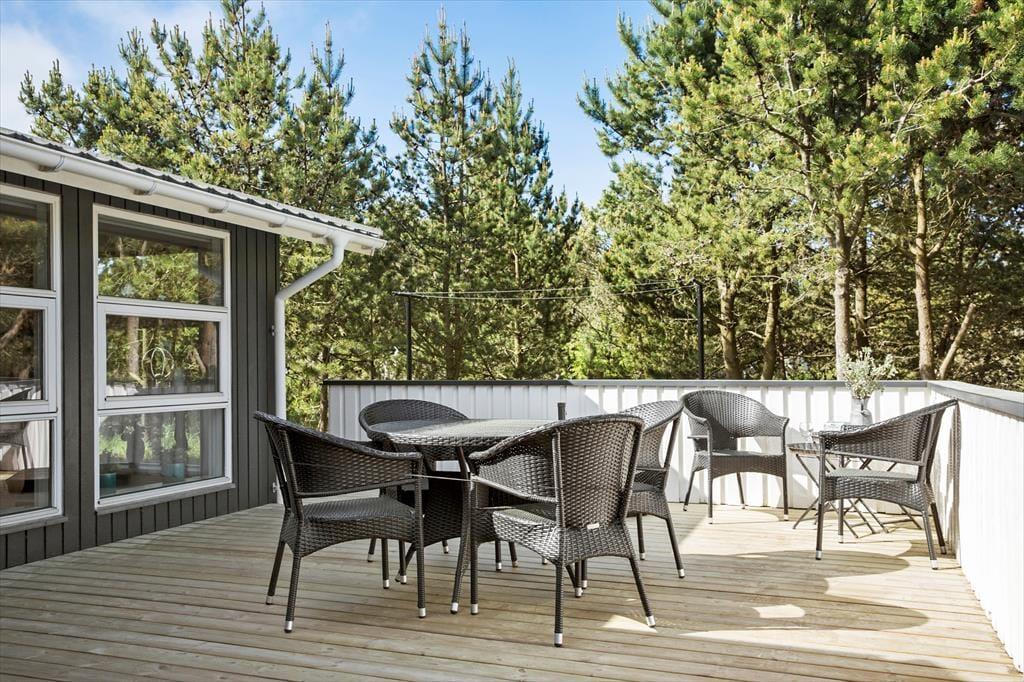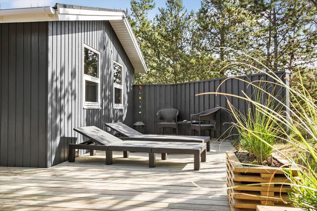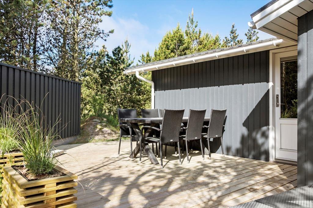 Når solen skinner, kan du træde direkte ud på den dejlige træterrasse, hvor komfortable havemøbler indbyder til lange, afslappende dage under åben himmel. Her kan du starte dagen med morgenmad i det fri eller afslutte den med en hyggelig grillaften i solnedgangens skær. Den grønne have omkring huset giver også plads til leg og aktiviteter for både store og små. Og når du får lyst til en strandtur, ligger Vesterhavet kun en kort gåtur væk – perfekt til en forfriskende dukkert eller en lang gåtur langs det brusende hav.