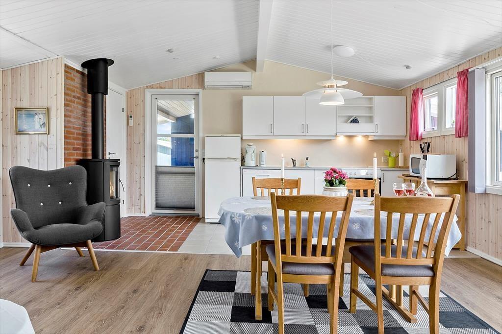 Træd indenfor i dette charmerende sommerhus, hvor hyggen er i centrum. De lyse rum, den varme brændeovn og en energivenlig varmepumpe skaber en behagelig atmosfære året rundt. Indretningen er enkel, men gennemført med sans for detaljen – her kan du smide benene op og nyde ferien i fulde drag. Om aftenen kan du lade ilden knitre i brændeovnen og mærke varmen brede sig, mens du nyder en god bog eller en kop varm kakao med familien. Køkkenet er funktionelt og åbent, så madlavningen kan gå hånd i hånd med hyggelige samtaler. Med plads til fire personer er dette et ideelt sommerhus til en lille familie eller et par, der ønsker at nyde naturen i fredelige omgivelser.