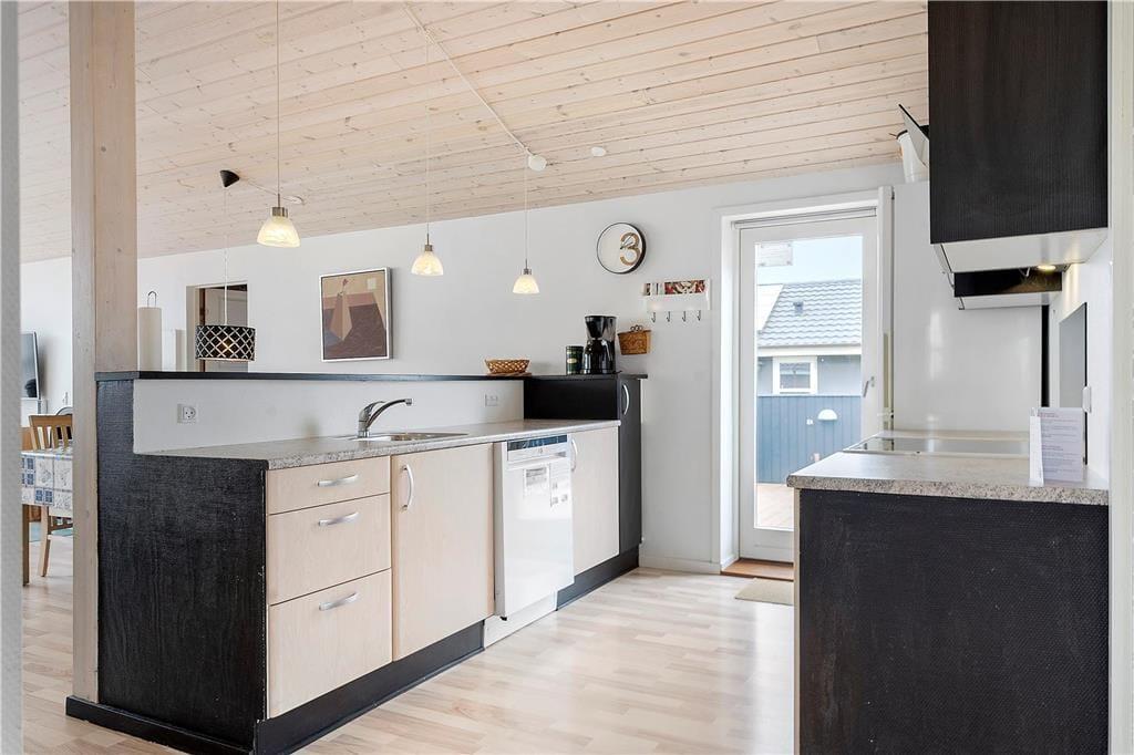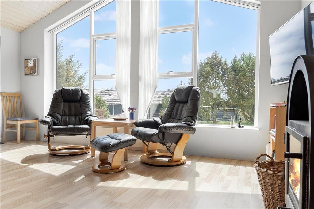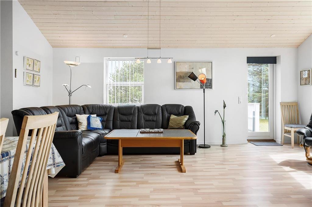 Så snart du træder indenfor i dette sommerhus, mærker du den varme og hyggelige atmosfære, som kendetegner et ægte feriehus. Den lyse og indbydende stue danner rammen om samvær og afslapning, og her kan du nyde lyden af brændeovnens knitrende flammer, mens feriestemningen breder sig. Huset er indrettet med omtanke, så du og dine gæster straks vil føle jer hjemme. Efter en dag fyldt med oplevelser kan I samles i sofaen med en god bog, spille brætspil eller nyde en film i den bløde belysning. Det åbne opholdsrum giver en behagelig fornemmelse af rummelighed, og køkkenet er funktionelt indrettet, så I nemt kan samles om madlavningen.