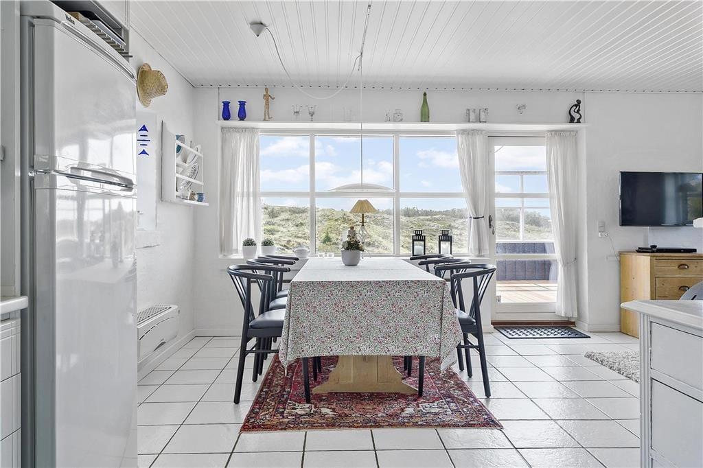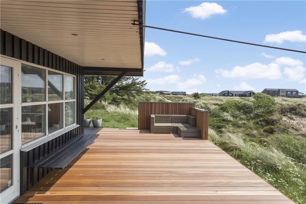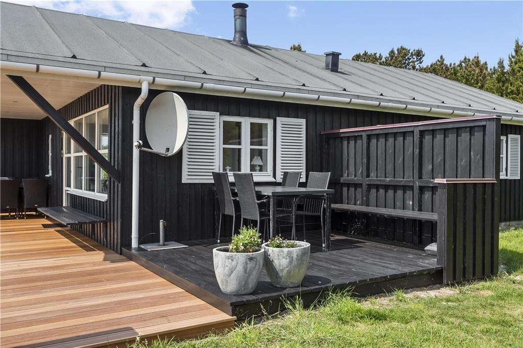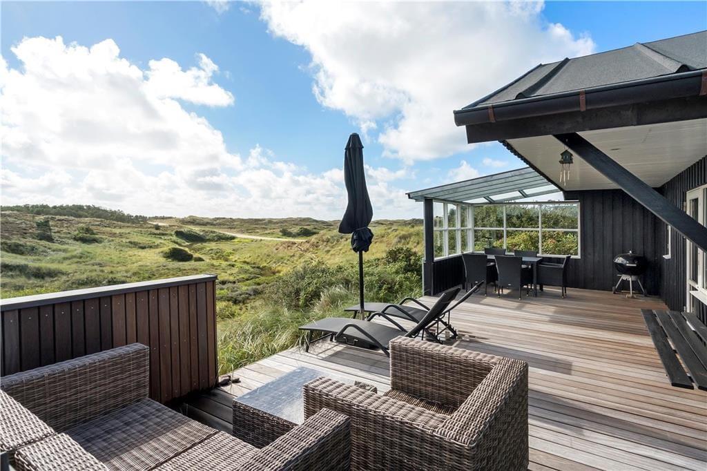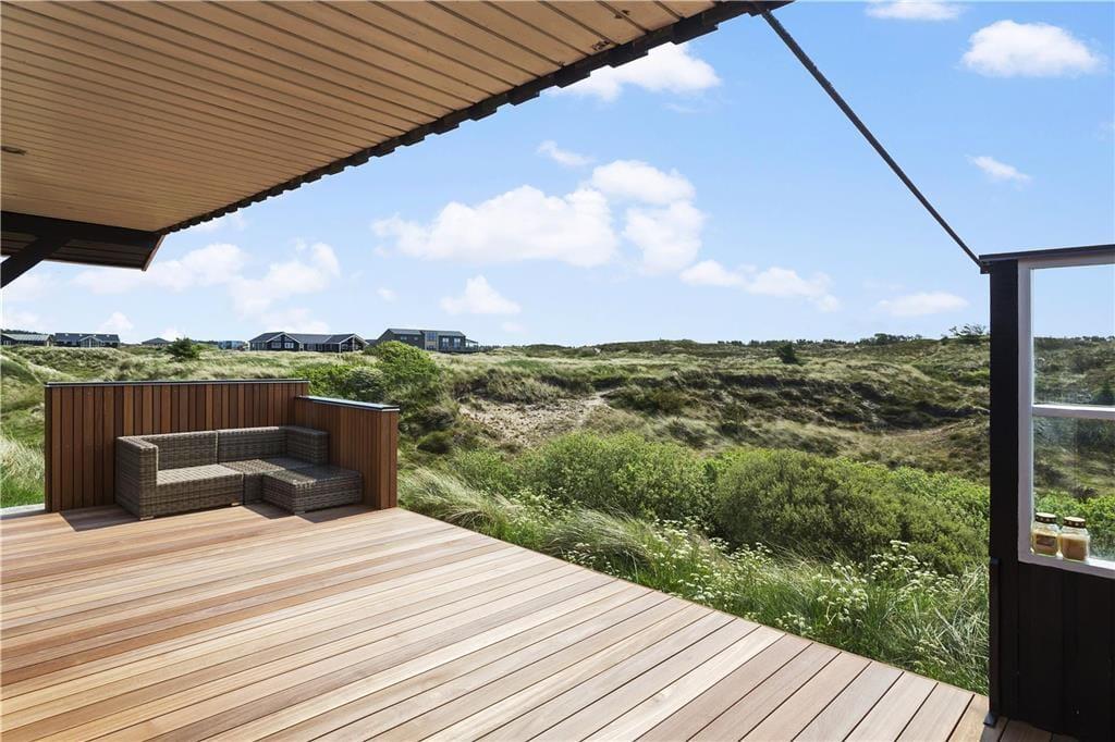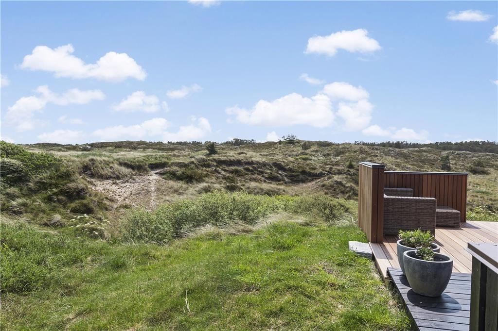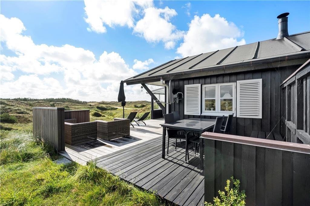 Det skønne terrassemiljø er uden tvivl et af sommerhusets højdepunkter. Her kan du nyde dagens første solstråler med morgenkaffen i hånden eller grille en lækker middag på de lune sommeraftener. Terrassen er rummelig og indbyder til afslapning i liggestolene, mens du lader blikket vandre ud over det smukke landskab. Den omkringliggende natur skaber en følelse af ro og privatliv, hvor du virkelig kan koble fra og nyde ferien i dit eget tempo. Hvis du er til friluftsliv, kan du tage en gåtur i området og opleve den rå og uspolerede natur, som kendetegner Thy.