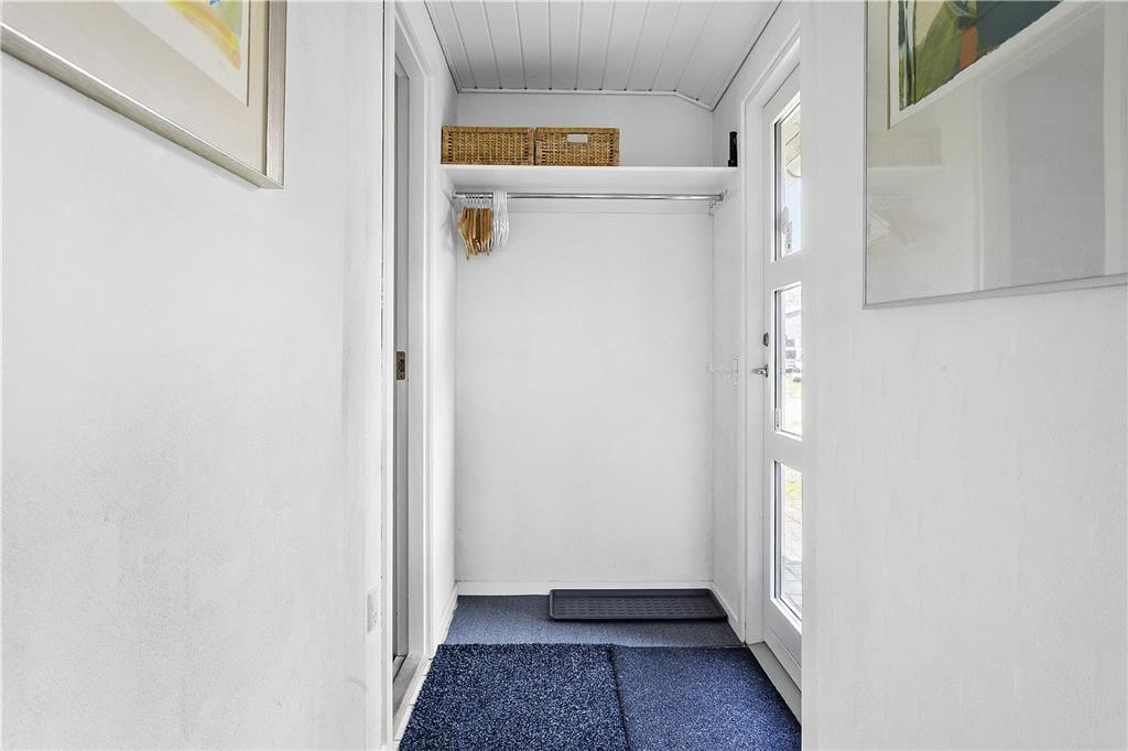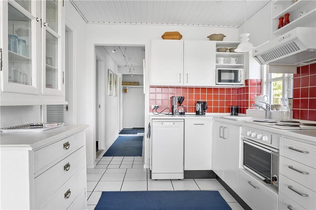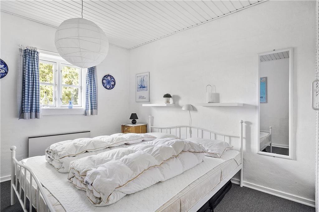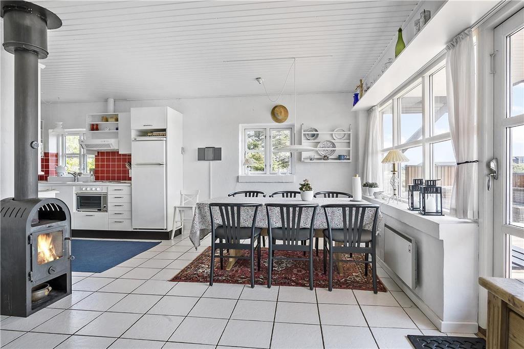 Når du træder indenfor i sommerhuset, mærker du straks den hyggelige atmosfære. Stuen er indrettet med komfortable møbler og store vinduer, der lader lyset strømme ind og giver et smukt kig ud over det omkringliggende landskab. Brændeovnen skaber den perfekte ramme om de kølige aftener, hvor flammerne knitrer, og varmen spreder sig i rummet. Her kan du læne dig tilbage med en god bog eller nyde en kop varm kakao i selskab med dine nærmeste. Køkkenet er velindrettet, så du nemt kan tilberede lækre feriemåltider, som kan nydes ved spisebordet med udsigt til naturen udenfor.