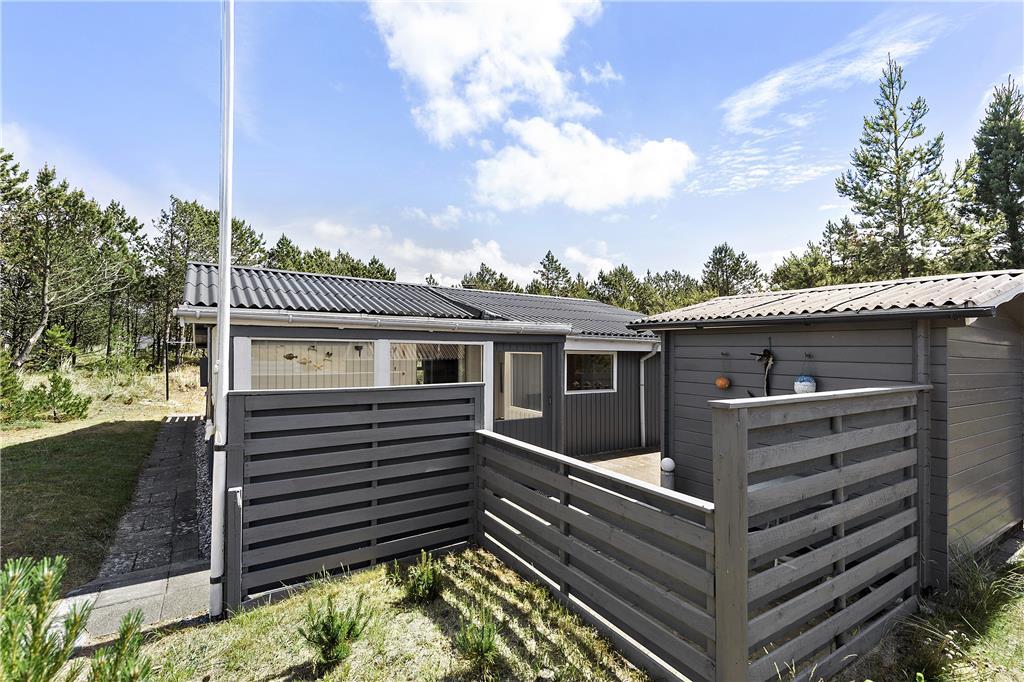 Sommerhuset ligger på en dejlig naturgrund, hvor du kan nyde ferielivet i det fri. Den skønne træterrasse er et oplagt sted at starte dagen med friskbrygget kaffe, mens du lytter til fuglene synge i klitterne omkring dig. På de lune sommeraftener kan du tænde op i grillen og nyde et lækkert måltid under åben himmel, mens solen langsomt går ned over landskabet. Hvis du har lyst til en frisk dukkert, ligger Vesterhavet inden for kort rækkevidde – perfekt til en morgendukkert eller en lang gåtur langs stranden med vinden i håret.