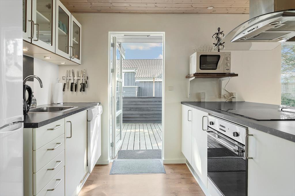 Sommerhuset emmer af ægte sommerhushygge med sin varme atmosfære og brændeovn, der bliver et naturligt samlingspunkt på kølige aftener. Når vinden rusker i marehalmen udenfor, kan du tænde op i ilden, lade flammerne danse bag ruden og mærke varmen brede sig, mens du nyder en god bog eller en brætspilsaften med familien. Stuen er rummelig og lys, og den åbne planløsning gør det let at være sammen – uanset om du står i køkkenet og forbereder aftensmaden eller slapper af i sofaen. Her er plads til op til seks personer, så der er rig mulighed for at samle familien eller tage på ferie med gode venner.