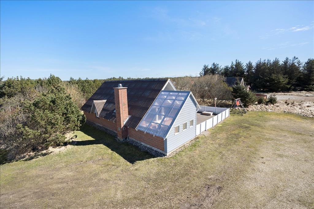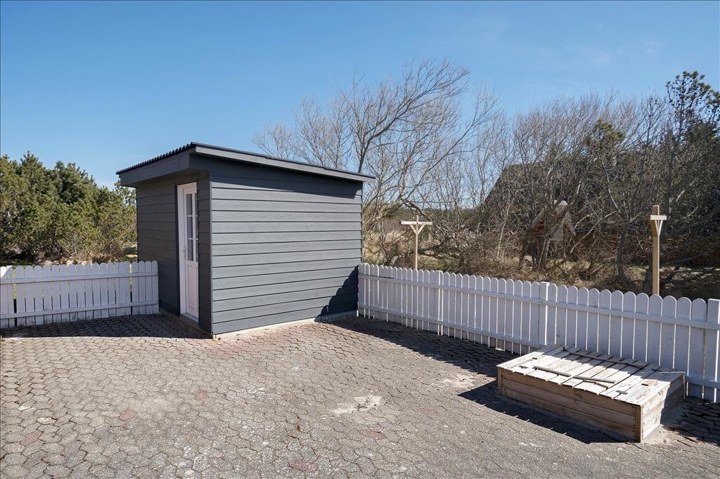 Udenfor bliver du mødt af en skøn, grøn oase, hvor der er god plads til både leg og afslapning. Børnene kan more sig med at gynge eller løbe rundt og opdage små eventyr i haven, mens de voksne nyder solen på terrassen eller fordyber sig i en god bog. Samlingspunktet udendørs er det rummelige terrasseområde, hvor I kan tænde op for grillen og invitere feriefreden helt ned i maven med duften af god mad og lyden af fuglesang i baggrunden. Og når aftenhimlen maler alting gyldent, er det ganske enkelt svært ikke at lade sig forføre af den milde brise fra Vesterhavet – et perfekt punktum for en dag fyldt med nærvær og gode grin.