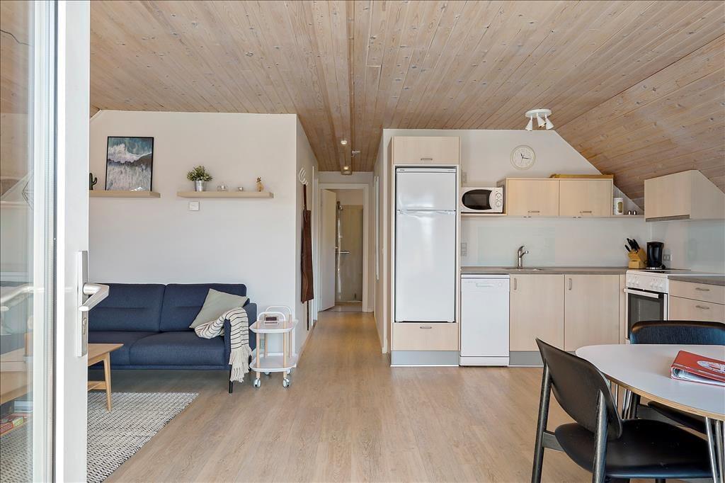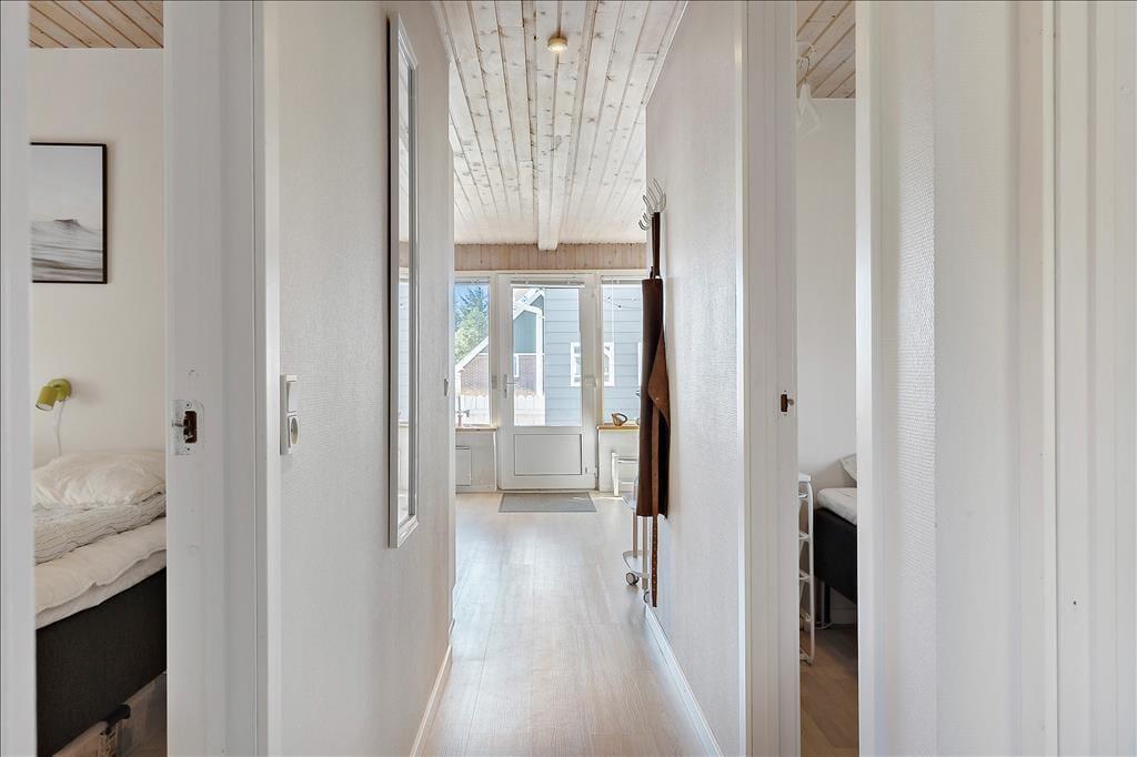 Inden døre mærker du straks en varm og afslappet atmosfære, der gør det nemt at falde til ro. Her er indrettet med fokus på det, der virkelig betyder noget på en ferie: tid og plads til samvær og ro i krop og sjæl. En moderne og energibesparende opvarmningskilde holder temperaturen behagelig, så du både kan nyde skønne efterårsdage med regn mod ruden og lune sommeraftener i kølig komfort. Køkken og stue hænger fint sammen, så det er let at være fælles om hverdagens små hyggeritualer, om det så er madlavning, brætspil eller en god bog i sofaen. Og så er der selvfølgelig også mulighed for at trække dig tilbage med en kop te og fordybe dig i feriens rolige tempo, mens du lader tankerne vandre og bare lytter til stilheden.