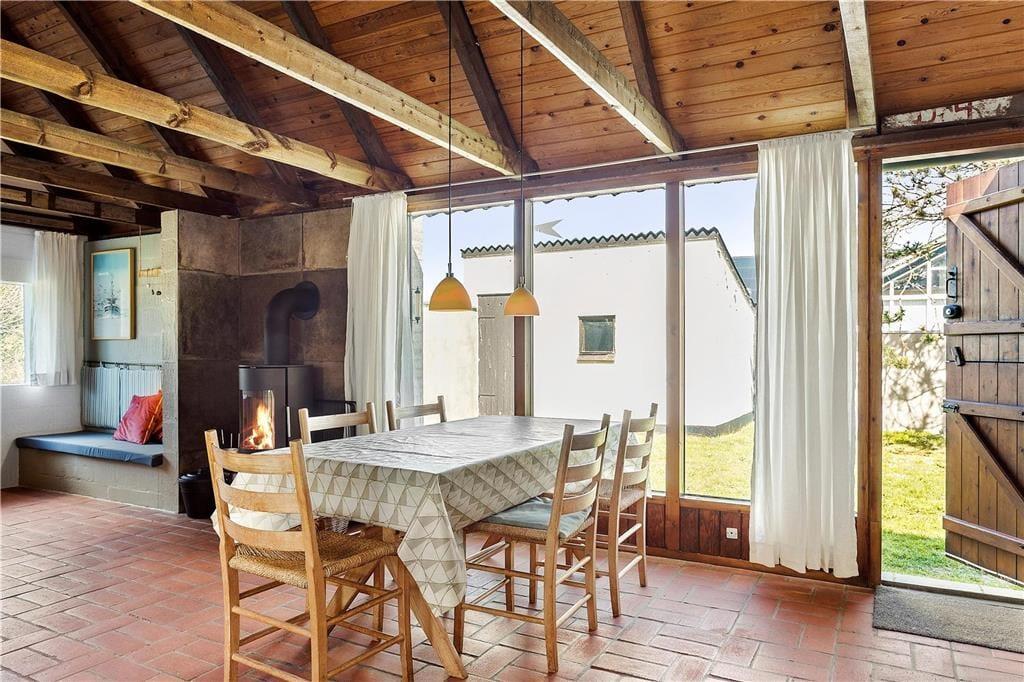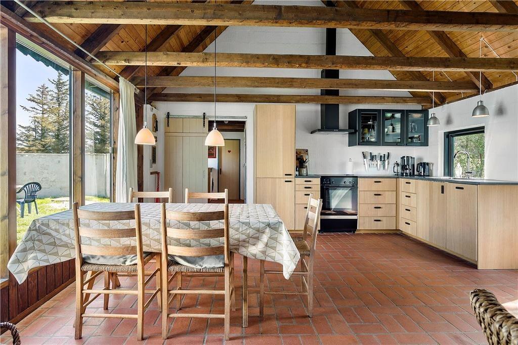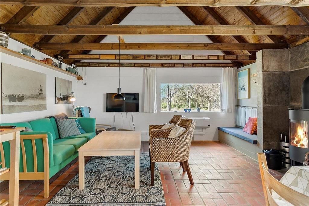 Træd ind i en hyggelig oase, hvor sommerhusstemningen møder dig allerede i entréen. Her er alt indrettet med fokus på afslapning og nærvær, så du kan lægge hverdagen på hylden med det samme. Den rummelige opholdsstue indbyder til fælles samvær, hvor I kan sprede jer i komfortable møbler, mens brændeovnen knitrer og skaber en lun stemning. Varmen fra ilden breder sig hurtigt gennem rummet og indhyller hele huset i en behagelig fornemmelse, der gør enhver aften til en særlig stund. Her er plads til både lange samtaler over et brætspil og stille stunder med en god bog. I det lyse køkken kan du fornemme duften af friskbrygget kaffe om morgenen og det gode måltid, der tilberedes, mens I deler feriens små og store oplevelser. Selv på en kølig dag emmer sommerhuset af ro og varme, så du kan finde hjemlig hygge hele året rundt.