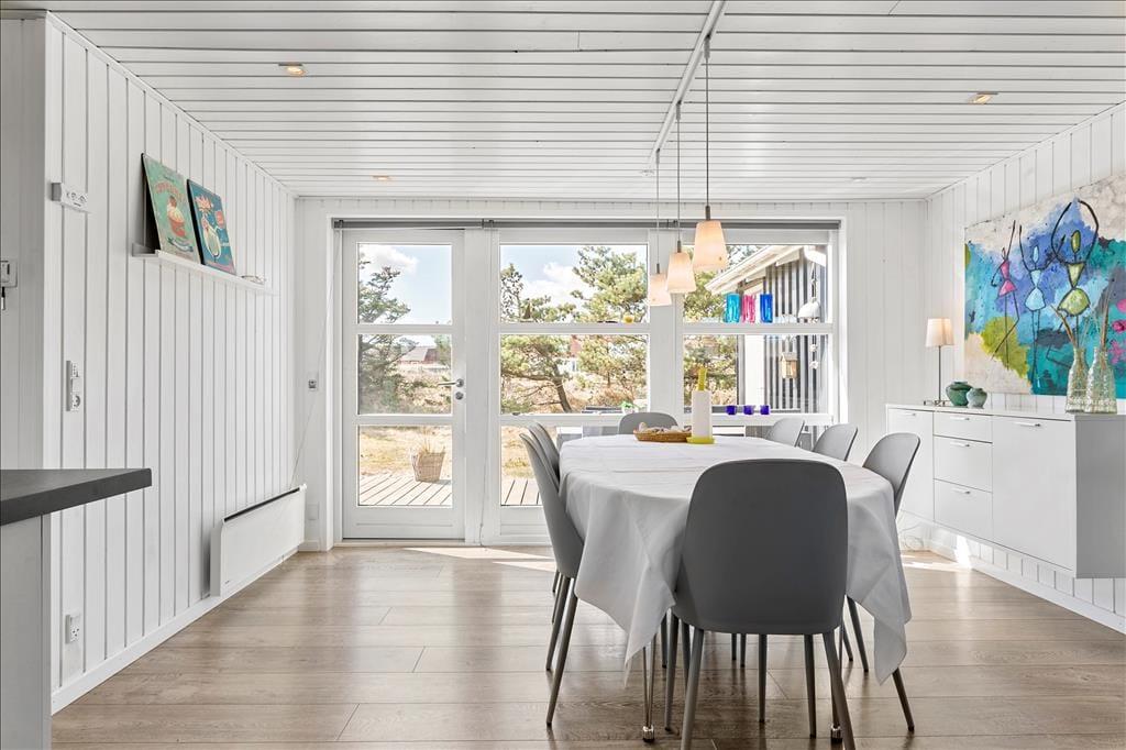 Træd indenfor i dette meget velholdte og smagfuldt indrettede sommerhus, hvor den varme atmosfære straks omfavner dig. Med en indbydende stue, hvor en hyggelig brændeovn spreder en blid og beroligende varme, skaber hjemmet en ramme for lange, hyggelige aftener i godt selskab. De nøje udvalgte detaljer og den omhyggeligt planlagte indretning giver en følelse af både komfort og stil, hvor hvert rum emmer af personligt præg og kvalitet. Forestil dig at nyde en stille stund med en god bog, mens du lytter til den sagte knitren fra brændeovnen, eller at samles med dem, du holder af, i et rum, der emmer af hjemlig hygge og charme. De lyse farver og bløde materialer indbyder til afslapning, og den gennemtænkte indretning giver plads til både ro og kreativitet – alt sammen med tanke på at gøre din ferieoplevelse helt unik og mindeværdig.