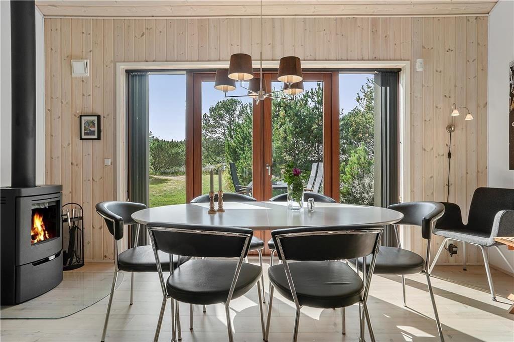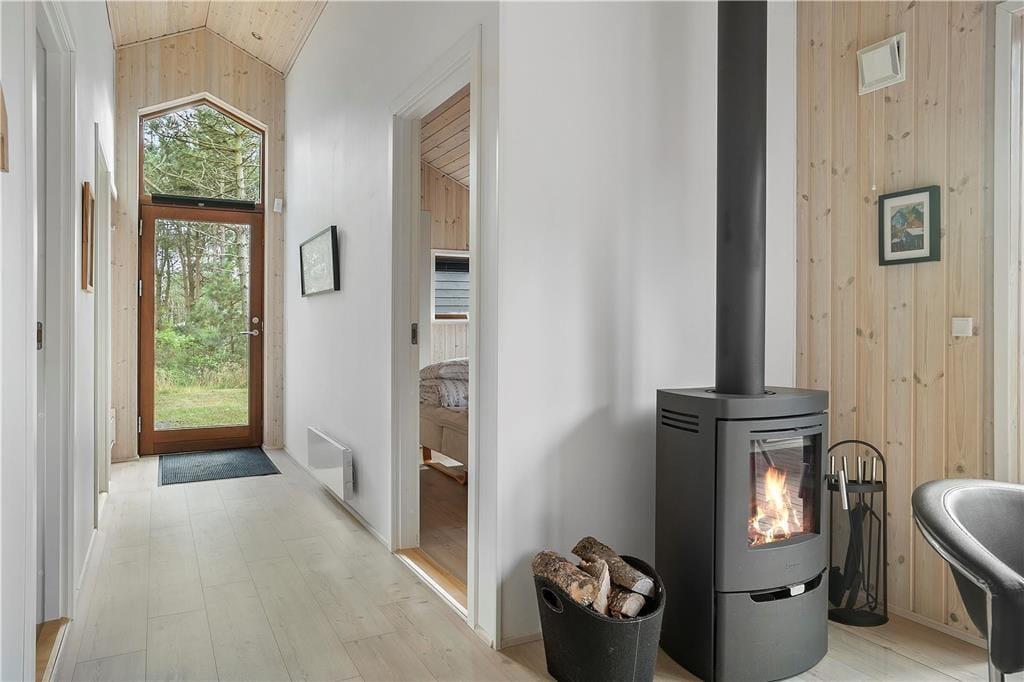 Træd indenfor i sommerhusets varme og indbydende atmosfære, hvor hver detalje er med til at skabe en følelse af hjemmeværdighed og ro. Den smukt indrettede stue byder på en hyggelig brændeovn, som indbyder til lange, afslappende aftener med familien. Her kan du mærke den blide varme, der spreder sig, mens du lytter til den beroligende lyd af knitrende ild og mærker den omfavnende hygge, som kun et rigtigt velindrettet sommerhus kan give. De nøje udvalgte møbler og den personlige indretning skaber en atmosfære, hvor både store og små kan finde deres plads. Alt er designet med omtanke for at give dig en ferieoplevelse, hvor hver dag begynder med en fornemmelse af luksus og nærvær. Her kan du endda finde små overraskelser, der gør opholdet endnu mere mindeværdigt – en indbydende detalje, der understreger husets charme og den varme gæstfrihed, der præger hele boligen.