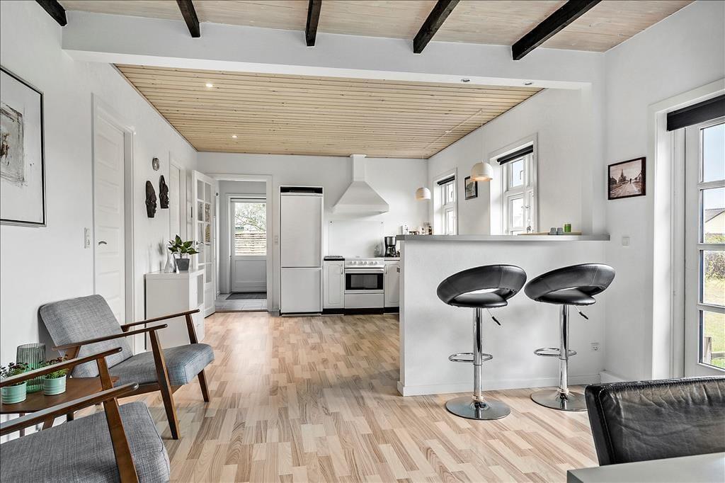 Træd ind i dette moderne fiskerhus, der med sin varme og hyggelige atmosfære omfavner dig med det samme. Her er indretningen nøje gennemtænkt med en perfekt balance mellem moderne bekvemmeligheder og de traditionelle fiskerhuselementer, der vidner om områdets stolte historie. De indbydende rum er fyldt med naturligt lys, og den bløde farvepalet og de nøje udvalgte materialer skaber en hjemlig og afslappende stemning. Hver detalje, lige fra de charmerende, originale elementer til de moderne touches, er med til at skabe en følelse af tryghed og ro, som gør, at du straks føler dig hjemme. Forestil dig hyggelige stunder foran de små vinduer, hvor lyset spiller over de fine detaljer, og en stille eftermiddag, hvor du kan drømme dig væk til lyden af havets hvisken – alt sammen indenfor disse vægge, der emmer af personlighed og sjæl.