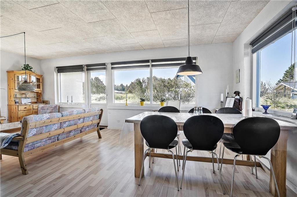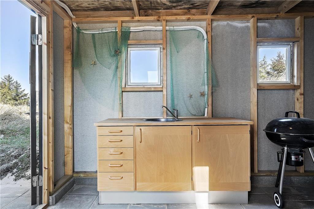 Udenfor byder sommerhusets placering på en enestående mulighed for at nyde både naturens og havets skønhed. Her kan du starte dagen med en stille stund på terrassen, hvor du lader dig fascinere af den uendelige udsigt over det brusende Vesterhav, mens du mærker den kølige havbrise og solens første stråler kærtegne huden. Haven rummer plads til leg og afslapning med blandt andet en charmerende gynge, der lokker børn og voksne til at genopleve barndommens glæder og skabe nye, lette øjeblikke af frihed og leg. Her er der rig mulighed for at kombinere afslapning med aktiviteter, så du kan nyde de lange, lyse sommerdage fuldt ud. Det udendørs område indbyder til både stille stunder med en god bog og livlige legeaftaler, alt imens naturen og havets stemninger danner den perfekte baggrund for en harmonisk ferieoplevelse.