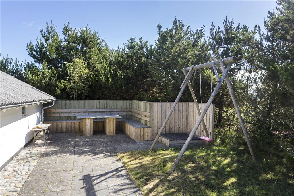 Udenfor åbner sommerhusets dejlige gård en verden af muligheder for både leg og afslapning. Her finder du en charmerende gynge, hvor du som barn eller voksen kan mærke suset og den frihed, som kun naturen kan give. Den åbne grund indbyder til hyggelige stunder i solen, lange gåture i den friske luft og måske endda en spontan picnic med alle familiens firebenede venner, for alle husdyr er nemlig velkomne her. Den rolige have er det perfekte sted til at nyde en kop kaffe i solopgangen eller lade tankerne flyve, mens du lytter til naturens stille lyde. Det er en sand oase, hvor du kan trække vejret dybt og lade alle sanser blive forkælet i det fri.