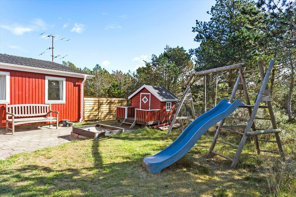 Udenfor venter en dejlig naturgrund, som indbyder til masser af udendørs aktiviteter og afslapning i det fri. Her kan du mærke græssets bløde dække under fødderne og lade sanserne blive vækket af de friske dufte fra den omkringliggende natur. Den rummelige grund er ideel til leg med børnene eller en stille stund med en kop kaffe, mens du lader tankerne flyve med vinden. Med rig mulighed for at lade alle husdyr løbe frit og trygt, skaber dette sted en naturlig ramme om den perfekte ferie, hvor både leg og ro går hånd i hånd. Forestil dig de lyse sommeraftener, hvor den klare himmel og stjernerne over Vorupør bliver det naturlige bagtæppe for lange samtaler og drømmefyldte stunder i det fri.
