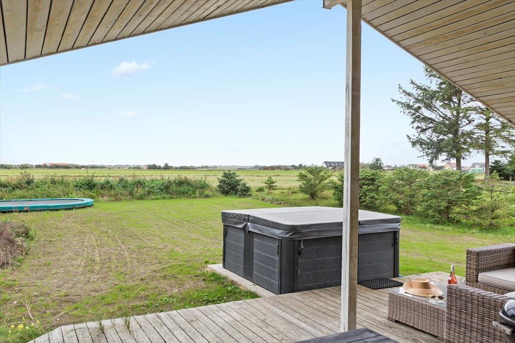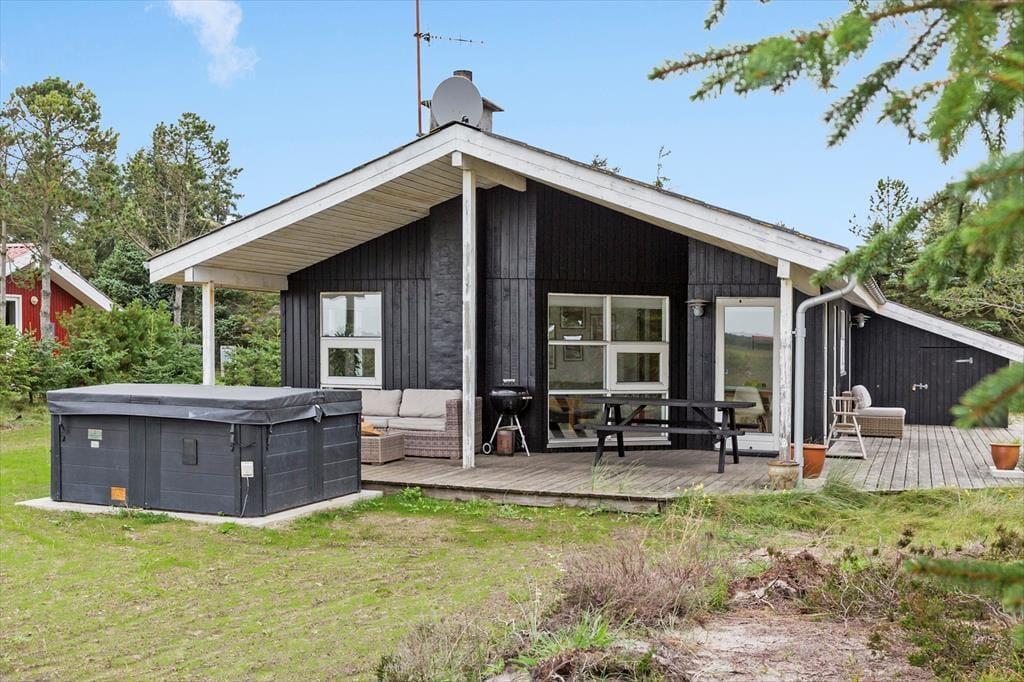 Udenfor åbner der sig et charmerende univers, hvor sommerhusets udendørs faciliteter virkelig træder i karakter. Den skønne terrasse og den velplejede have danner rammen om et fristed, hvor du kan slappe af og nyde den friske luft. Her finder du et indbydende udendørs spabad, som inviterer til lange, afslappende stunder under åben himmel – ideelt til både morgenvandringer og aftenbad i det varme vand. Forestil dig at starte dagen med en stille stund med en kop kaffe, mens solens stråler langsomt varmer den kølige morgenluft, og slutte dagen med et opfriskende dyp i spabadet. Det åbne uderum giver plads til hyggelige sammenkomster, leg og udendørs aktiviteter, som skaber rammerne for en aktiv, men alligevel afslappet ferie.