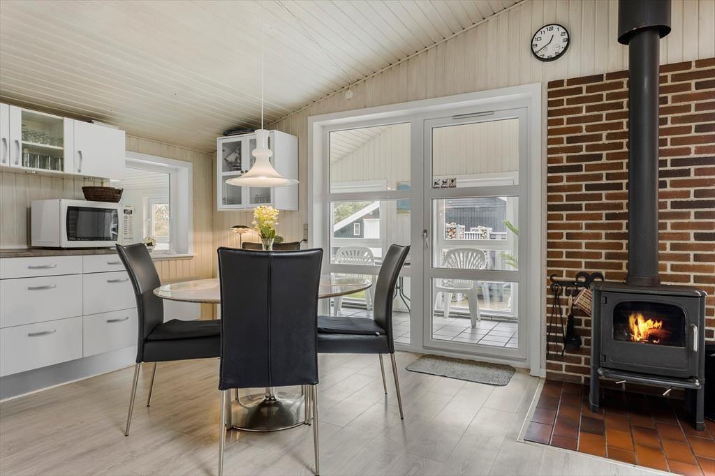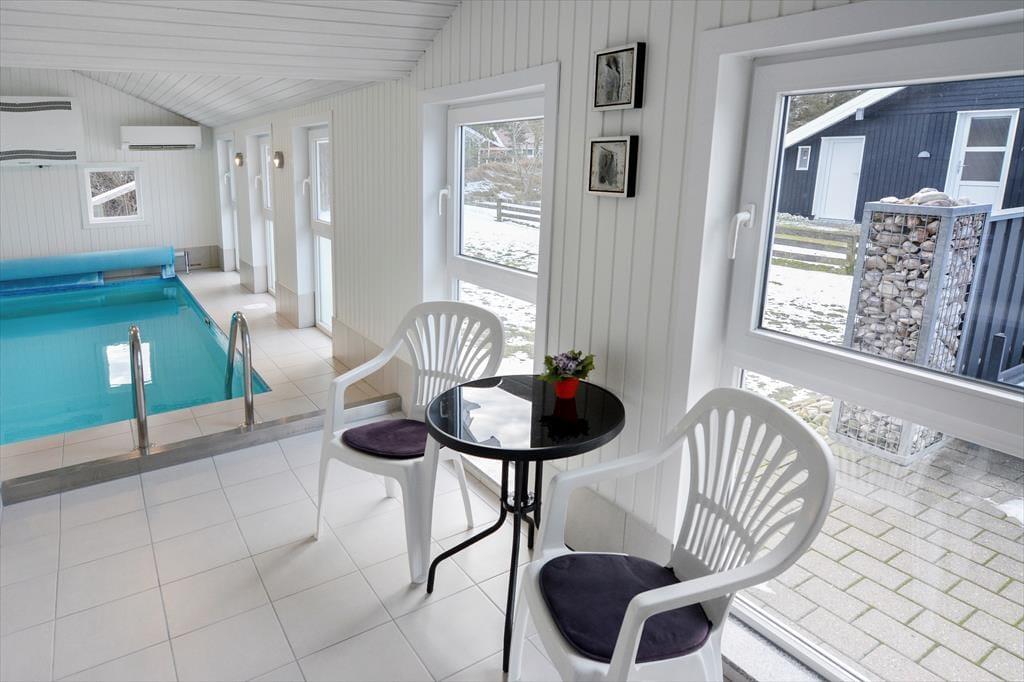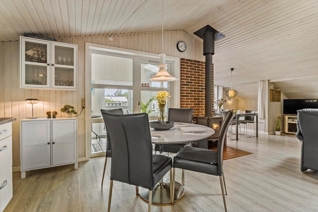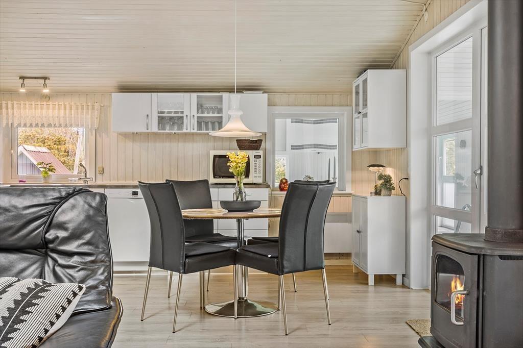 Træd ind i sommerhuset, og mærk straks den varme og indbydende atmosfære, der gør opholdet til en sand fryd for både krop og sind. Her er den charmerende brændeovn et centralt element, som fylder rummet med en blid glød og skaber en stemning, der minder om gamle, gode minder fra barndommens hyggelige stunder. Den indendørs pool er en sjælden luksus, som indbyder til forfriskende dyp og afslappende timer, mens saunaen sørger for en ekstra dosis wellness – ideel til at lade hverdagens stress forsvinde. Det hele er indrettet med sans for detaljen, hvor de nøje udvalgte materialer og den varme belysning understreger den autentiske sommerhusfølelse. Hver en krog i huset emmer af karakter og charme, hvilket gør det til det perfekte tilflugtssted for dem, der søger en ferie, hvor både afslapning og velvære går hånd i hånd.