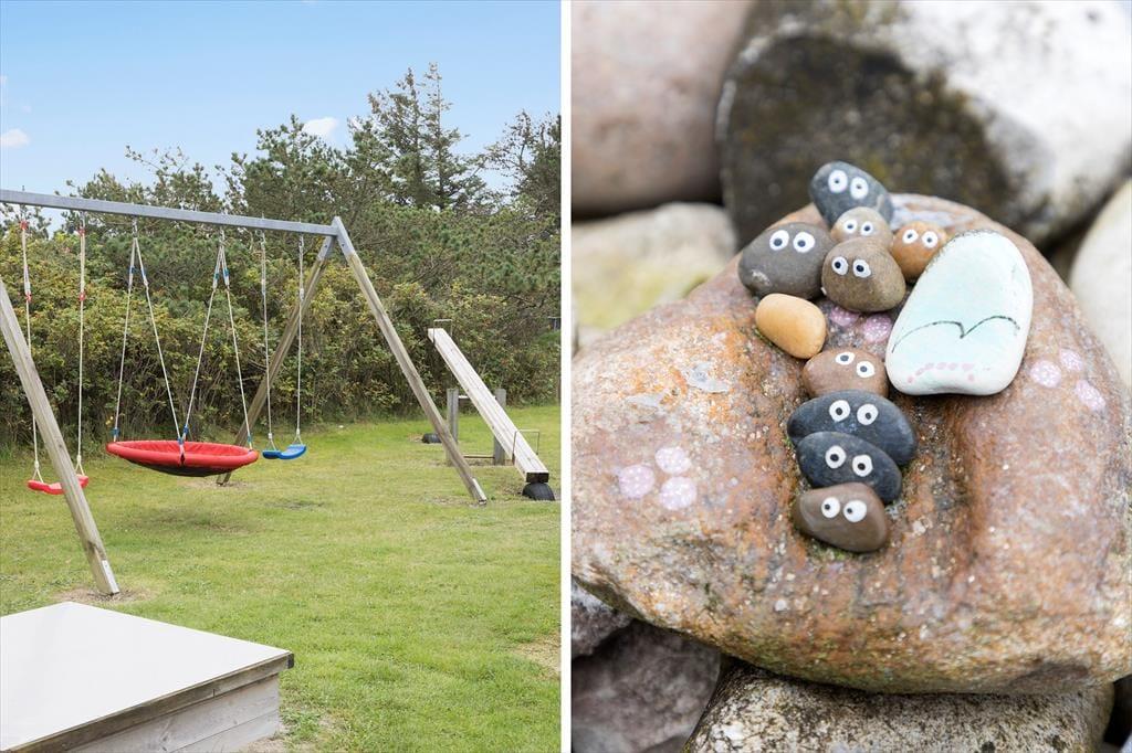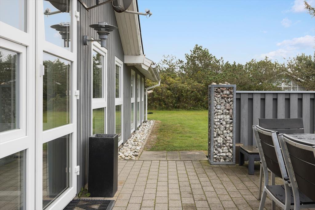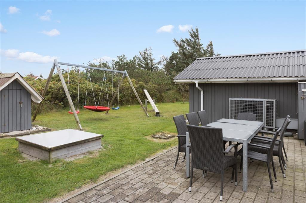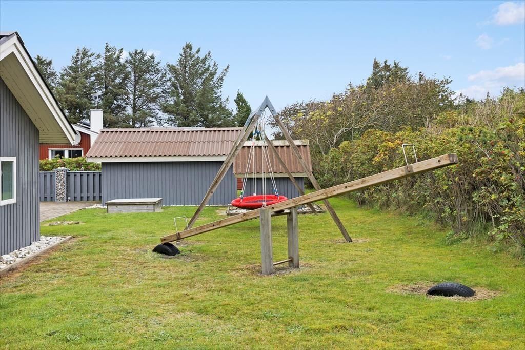 Når du træder udenfor, fortsætter oplevelsen i et smukt, naturligt miljø, hvor roen og det friske udendørslys får hele sommerhuset til at stråle. Den tilhørende udendørs terrasse er et ideelt sted at nyde en kop kaffe i de tidlige morgentimer eller samles til hyggelige grillaftener, hvor du kan mærke den salte brise fra havet og høre naturens stille symfoni. Her er der plads til leg og fordybelse, uanset om du ønsker at slappe af med en god bog eller engagere hele familien i sjove aktiviteter. Den rolige have, der omgiver huset, indbyder til gåture og eftertænksomhed, hvor naturens egen beroligende stemning smelter sammen med sommerhusets hyggelige indretning. Det er et sted, hvor hvert øjeblik udendørs føles som en kærkommen pause fra hverdagen.