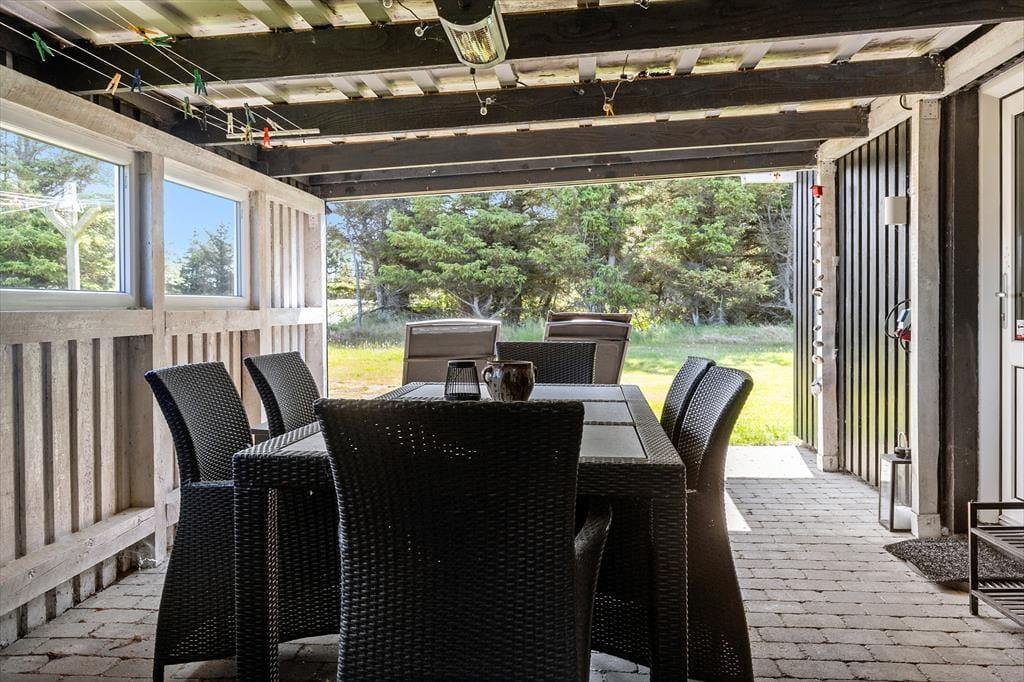 Udenfor åbner der sig et væld af muligheder, hvor den dejlige have danner rammen om mange hyggestunder i det fri. Her kan du nyde morgenkaffen under åben himmel, mens solens stråler kærtegner din hud og den friske havluft fylder dine lunger med energi. Huset byder på skønne udearealer, der indbyder til både leg og afslapning – perfekt til en picnic med familien eller en stille stund med en god bog i skyggen af de grønne træer. Den velplejede have giver plads til både afslapning og aktiviteter, og med hunden ved din side kan I sammen udforske de nærliggende stier og nyde de mange sanseindtryk, naturen byder på. De hyggelige udendørsarealer skaber en uforlignelig ramme for sommerens mange glæder og efterlader minder om solrige dage og kølige aftener med stjerneskær over himlen.