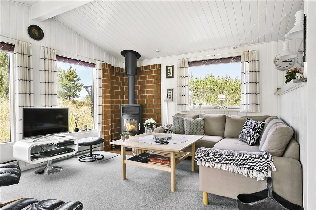 Når du træder ind i dette charmerende sommerhus, mødes du af en varm og indbydende stemning, der straks får skuldrene til at sænke sig. Det hyggelige opholdsrum er indrettet med komfortable møbler og masser af lysindfald fra de store vinduer, og brændeovnen udgør det naturlige samlingspunkt på kølige aftener. Her kan I lade ilden knitre, mens I fornemmer varmen brede sig, og nyde en god bog eller hyggelige samtaler over et glas vin. I den generøse spisestue kan I samles om måltiderne og diskutere dagens oplevelser ved havet eller i Nationalpark Thy, som ligger lige i nærheden. Alt i huset er indrettet med tanke på at skabe en rar og hjemlig atmosfære, hvor både familie og venner kan finde ro og nærvær. Og med muligheden for at have alle husdyr med, kan din firbenede ven også være en del af feriefællesskabet. Her er der med andre ord lagt op til skønne dage fulde af samvær og afslapning, uanset om vejrudsigten byder på solskin eller en køligere brise.