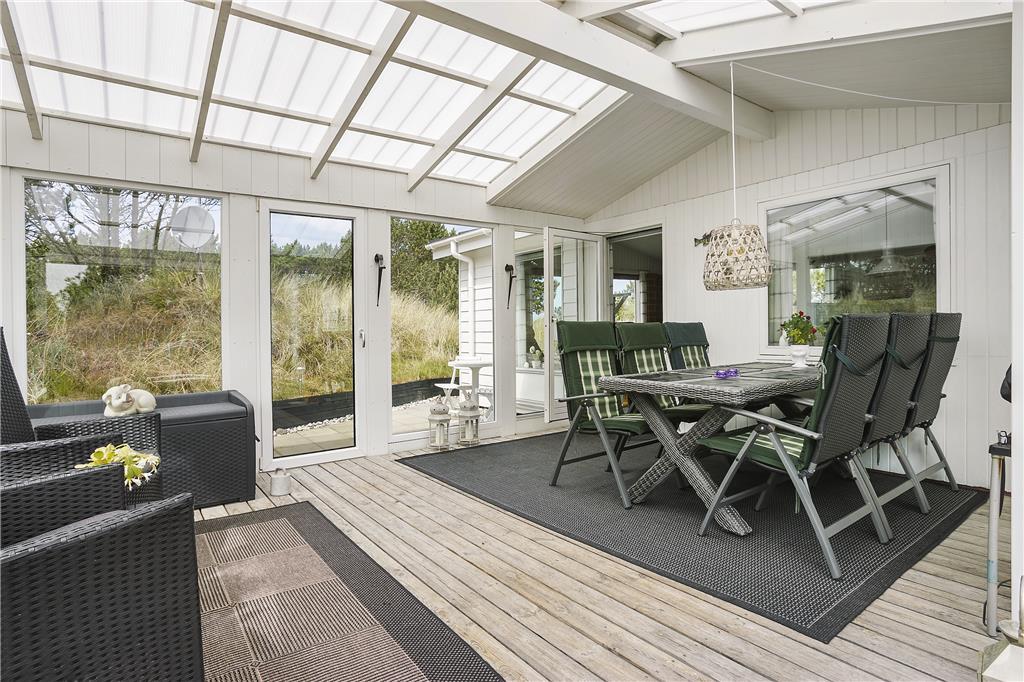 Udenfor møder du en velholdt og indbydende have, der er som skabt til både afslapning og leg. Den rummelige terrasse giver rig mulighed for at nyde solen dagen lang, mens I for eksempel tænder op i grillen og tilbereder lækker aftensmad under åben himmel. Det omkringliggende område er roligt, og man kan næsten høre vinden suse i marehalmen, mens fuglene kvidrer i baggrunden. Her er plads til både store og små feriegæster, der kan løbe barfodede rundt i græsset og lege tagfat, eller fordybe sig i en god bog under parasollen. Når aftenhyggen kalder, er det nemt at rykke indendørs og lade brændeovnen sørge for den sidste lune stemning, inden I lader jer synke ned i de bløde møbler. Naturen tæt på Vorupør gør desuden, at I hele tiden har fornemmelsen af at være omgivet af frisk luft, smukke landskaber og Vesterhavets særlige charme – og alt dette begynder lige uden for døren.