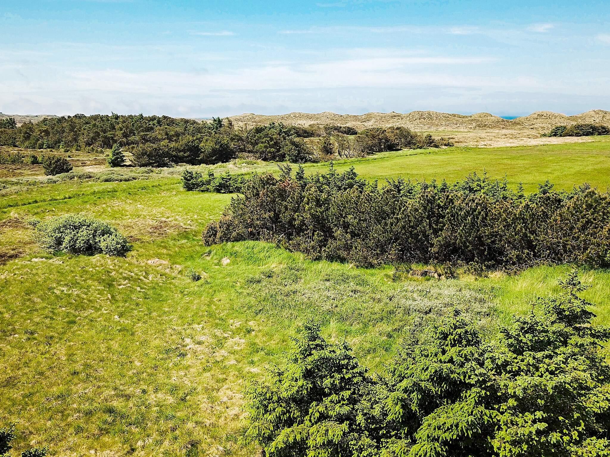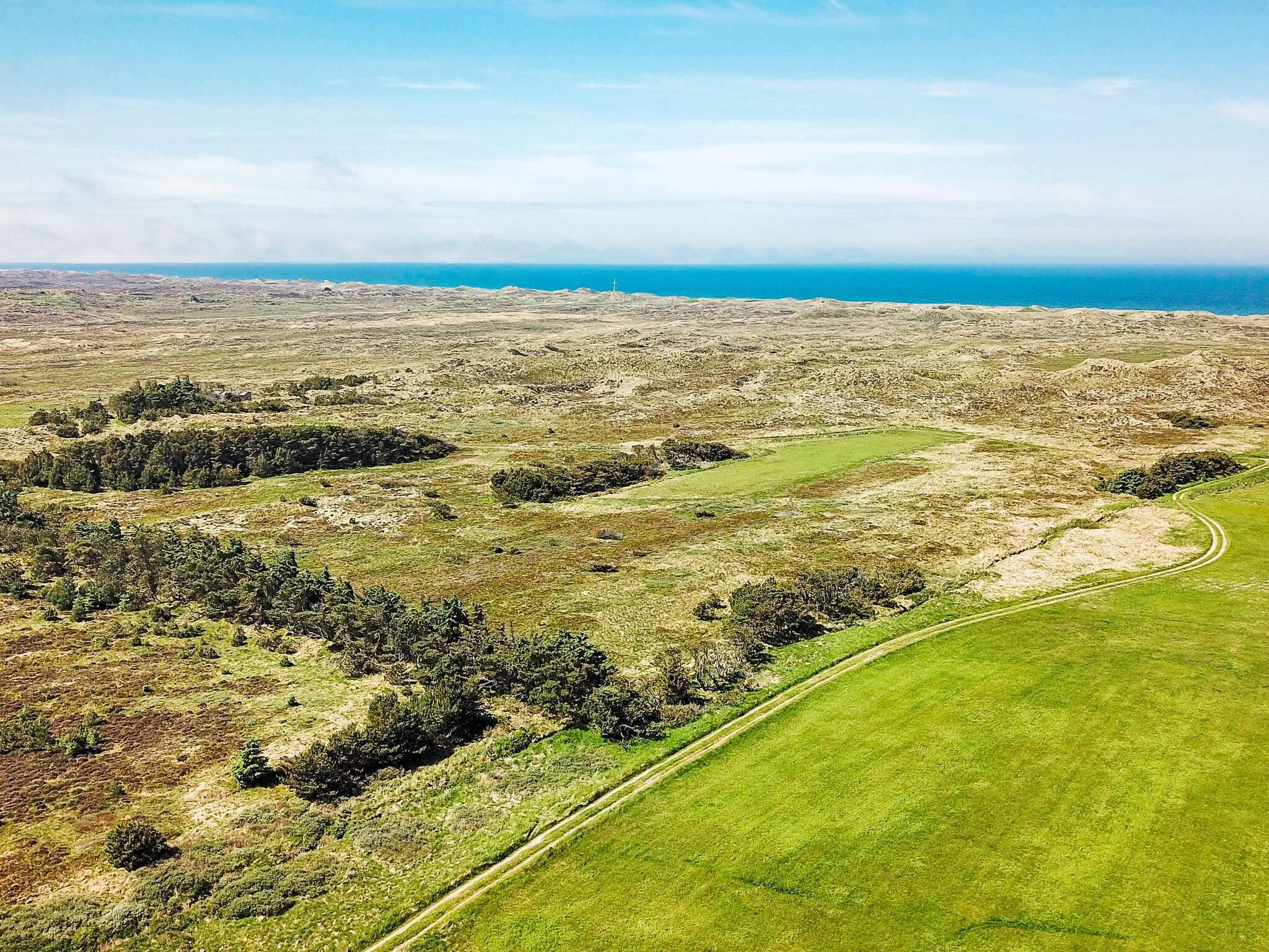 På en 5600 m2 stor grund på heden mellem Nr. Vorupør og Stenbjerg ligger dette sommerhus med sauna ude i klitterne med et rigt dyreliv. Både fra terrassen og huset er der en skøn udsigt over naturområdet, i særdeleshed fra opholdsrummet på 1. sal.