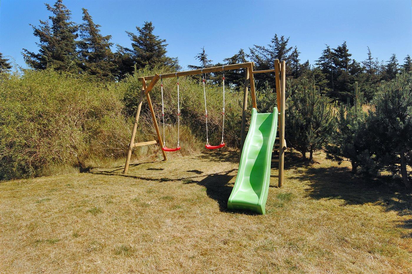 Ferieboligen er beliggende på en 1000 m² stor naturgrund. Der er 800 m til havet. Nærmeste forretning er beliggende i en afstand af 600 m. Til ferieboligen hører 60 m² terrasseareal. Desuden er der 20 m² overdækket terrasse. Heraf i alt 40 m² lukket terrasse. Gynge. Sandkasse. Rutchebane. Der er garage til rådighed.