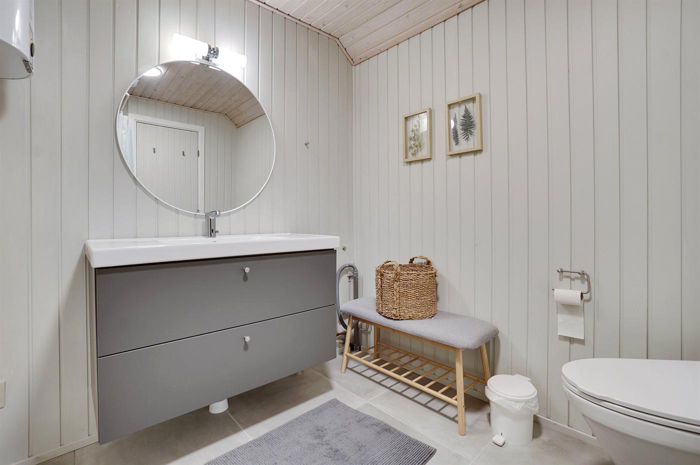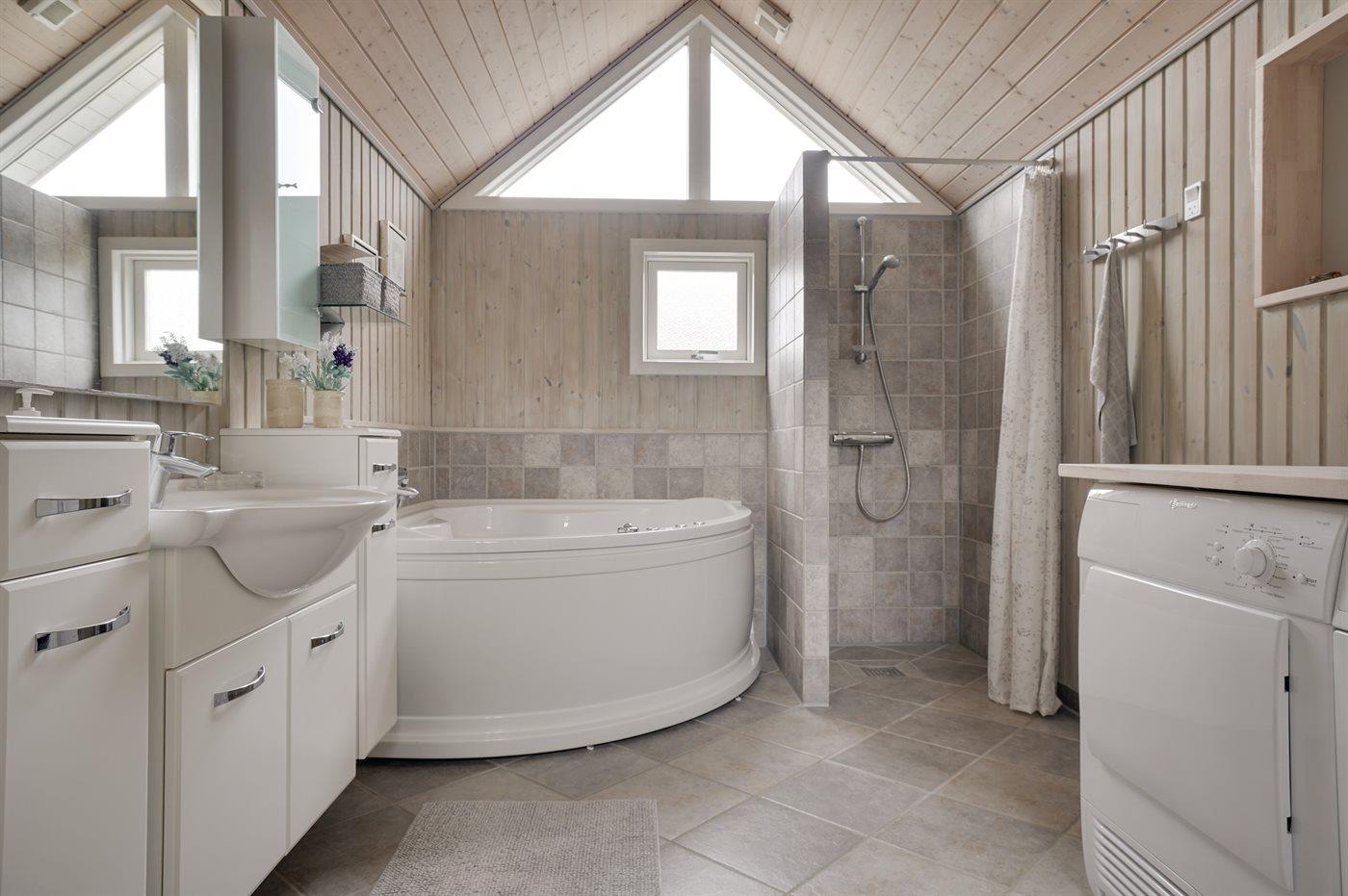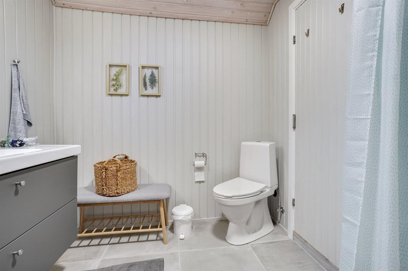 Der er 2 badeværelser med bruser og 2 toiletter. Der er gulvvarme på 1 badeværelse.
