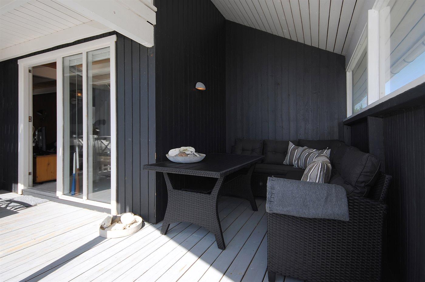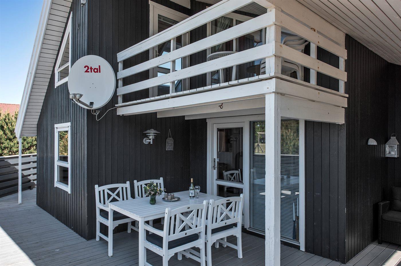 Til huset hører der en helt lukket, 70 m2 stor og til dels overdækket terrasse med havemøbler og grill. Der er desuden adgang til en balkon på husets 1. sal.